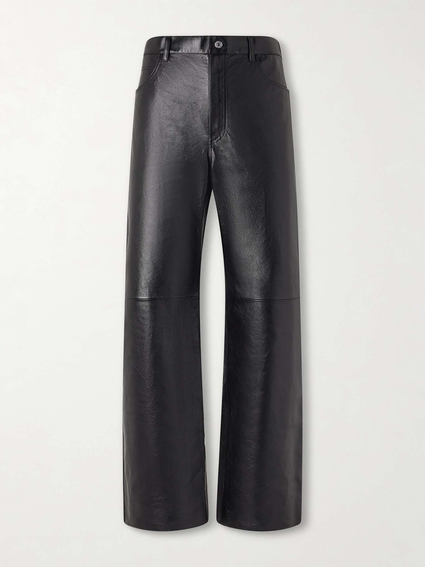 CELINE approaches the classics with an unexpected edge. Inspired by the cut of jeans, these straight-leg trousers have been made in Italy from glossy, supple leather and have a five-pocket constriction. The silver-tone button is engraved with the label's moniker.