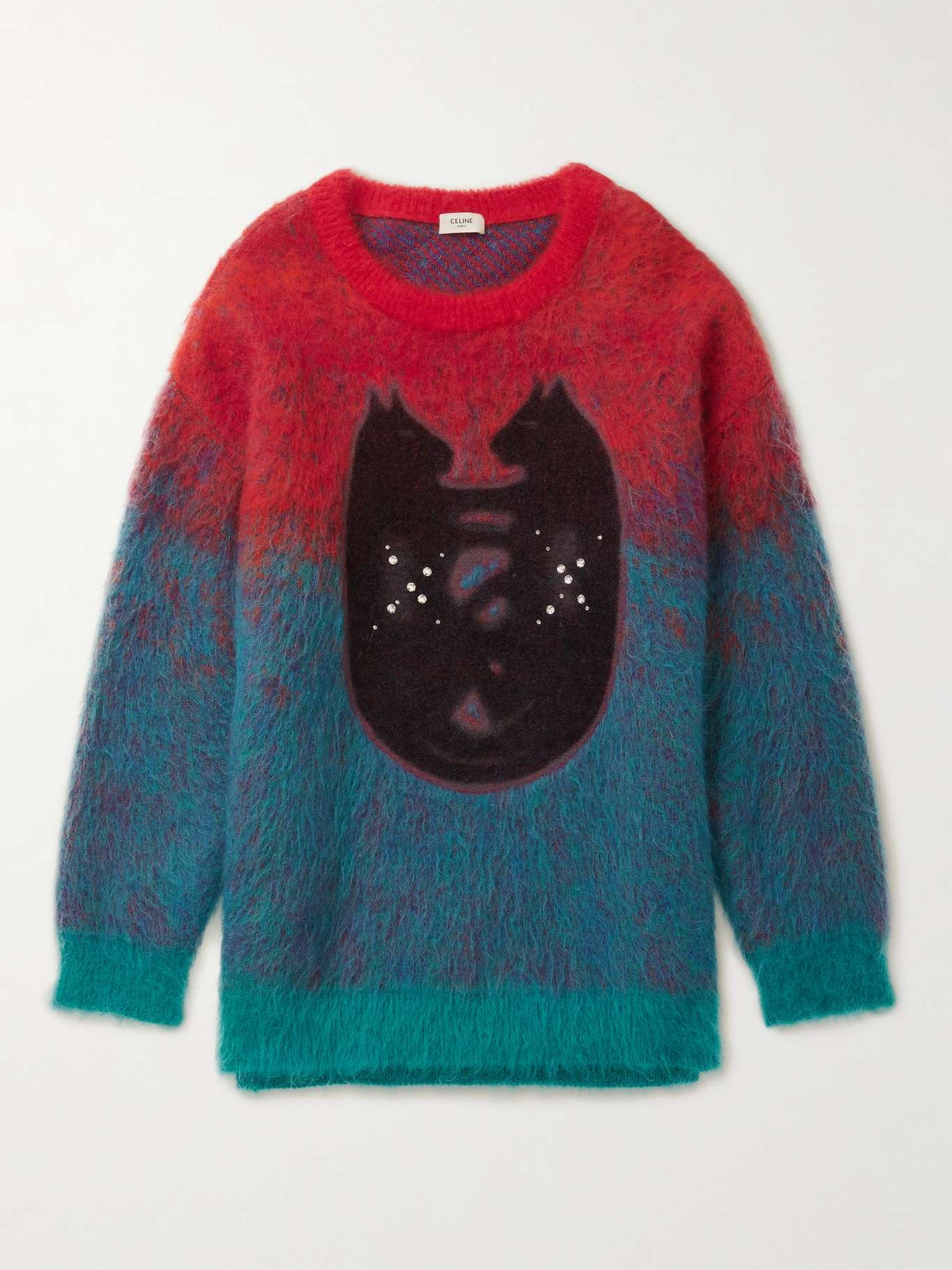 EXCLUSIVE AT MR PORTER. CELINE HOMME's sweater is brought into focus by a pair of crystal-embellished Egyptian cats set against a vibrant dégradé colour palette. It's spun from a fuzzy mohair-blend in a slouchy profile.