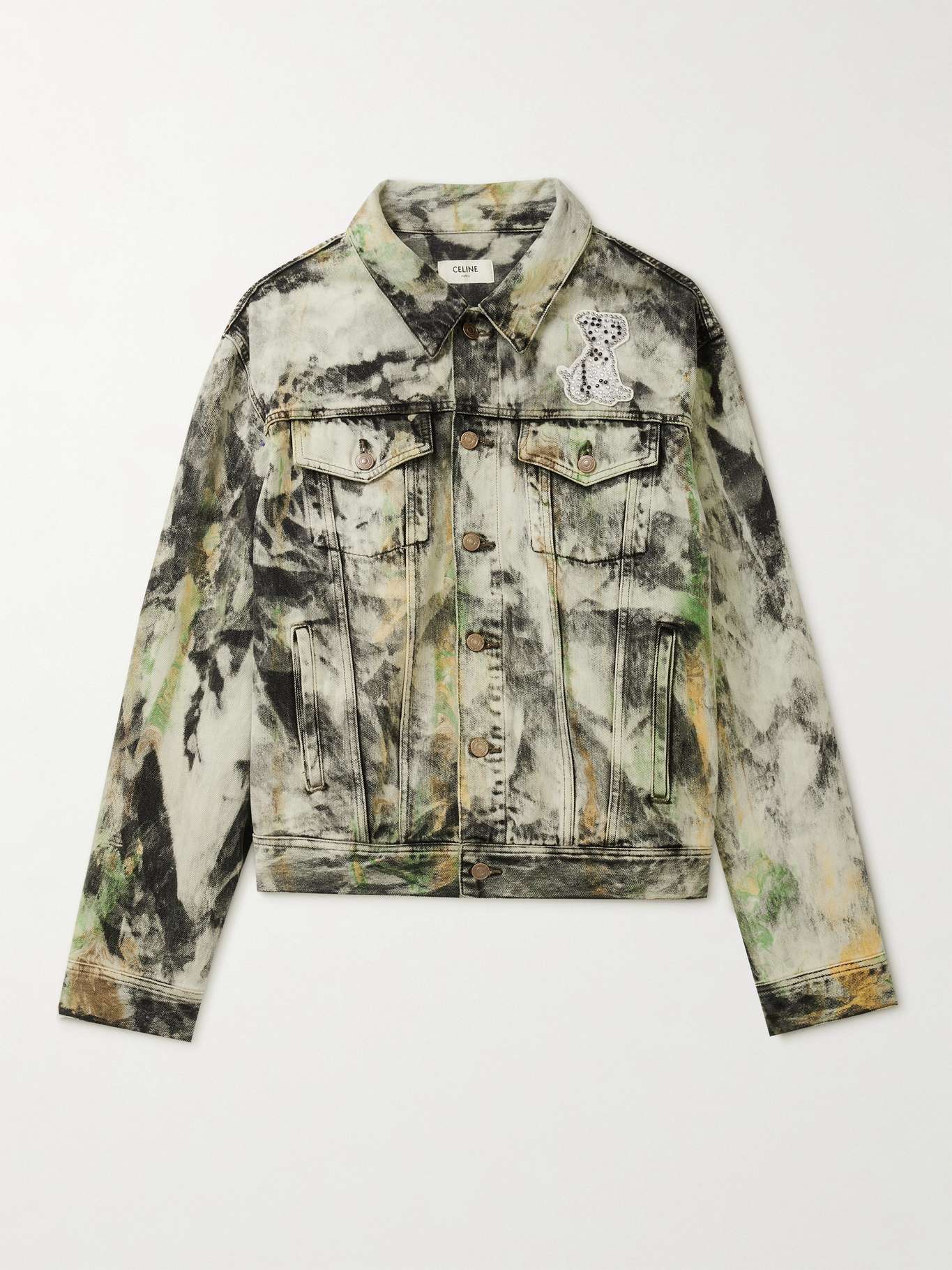 EXCLUSIVE AT MR PORTER. A true statement piece, CELINE HOMME's denim jacket showcases a kinder way of wearing animals. Cut for a relaxed fit, it's artfully tie-dyed and appliquéd with puppies. Zoom in to really appreciate the crystal embellishments.
