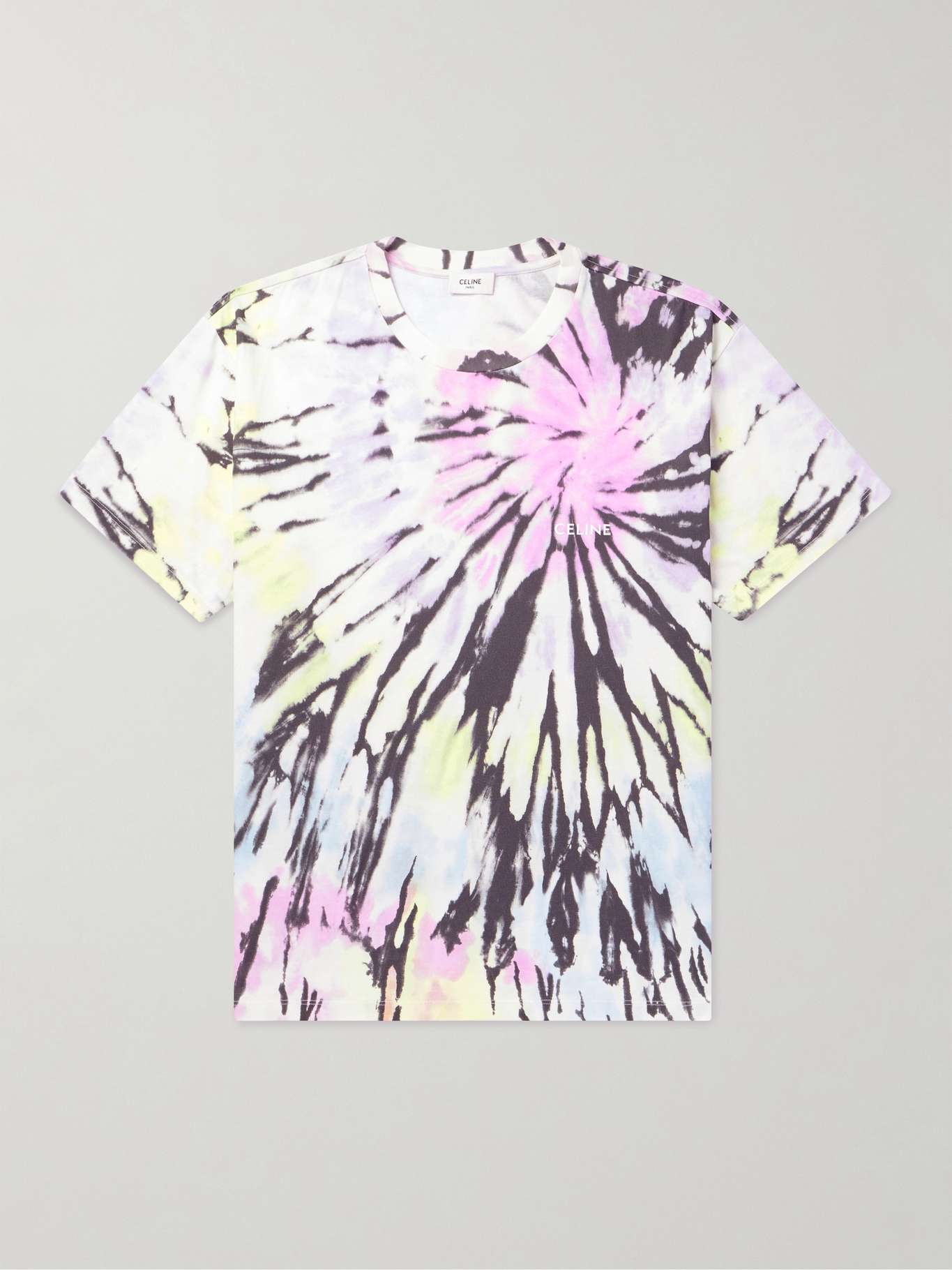 Brighten up your wardrobe (and mood) with CELINE HOMME's T-shirt. It's cut from stretch-cotton jersey, tie-dyed with a washed-out rainbow of hues and simply printed with the brand's name at the chest.