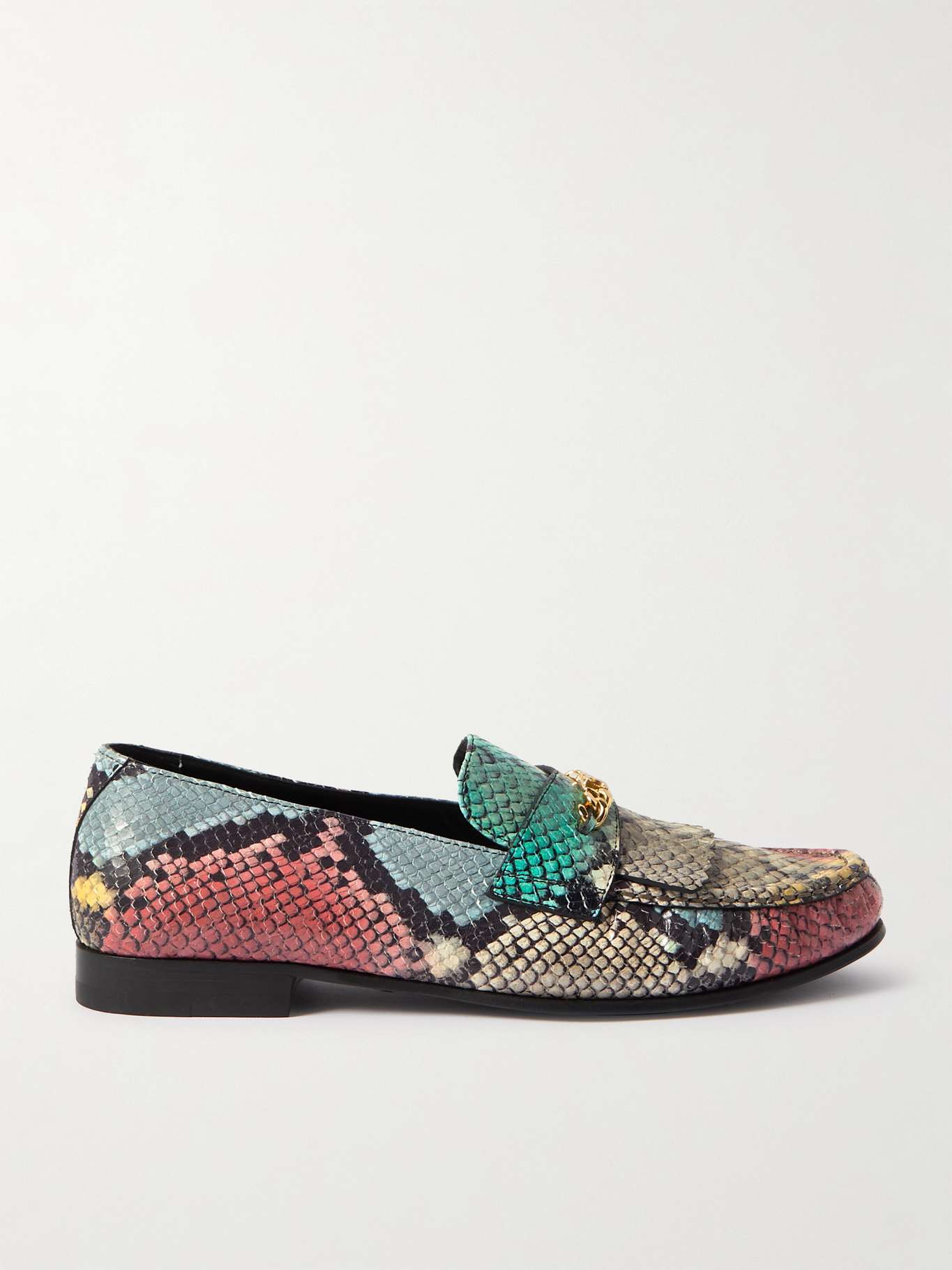 CELINE Luco Logo-Embellished Fringed Snake-Effect Leather Loafers