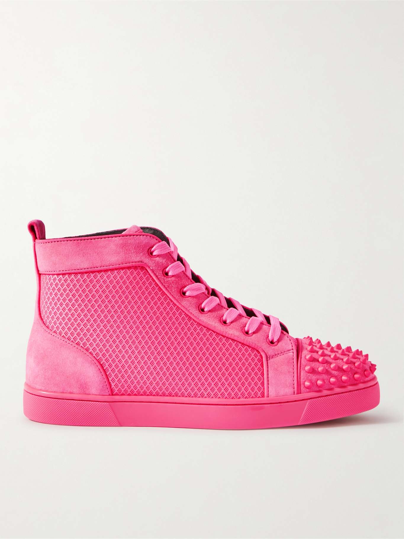 CHRISTIAN LOUBOUTIN Louis Spiked Suede-Trimmed Mesh High-Top Sneakers