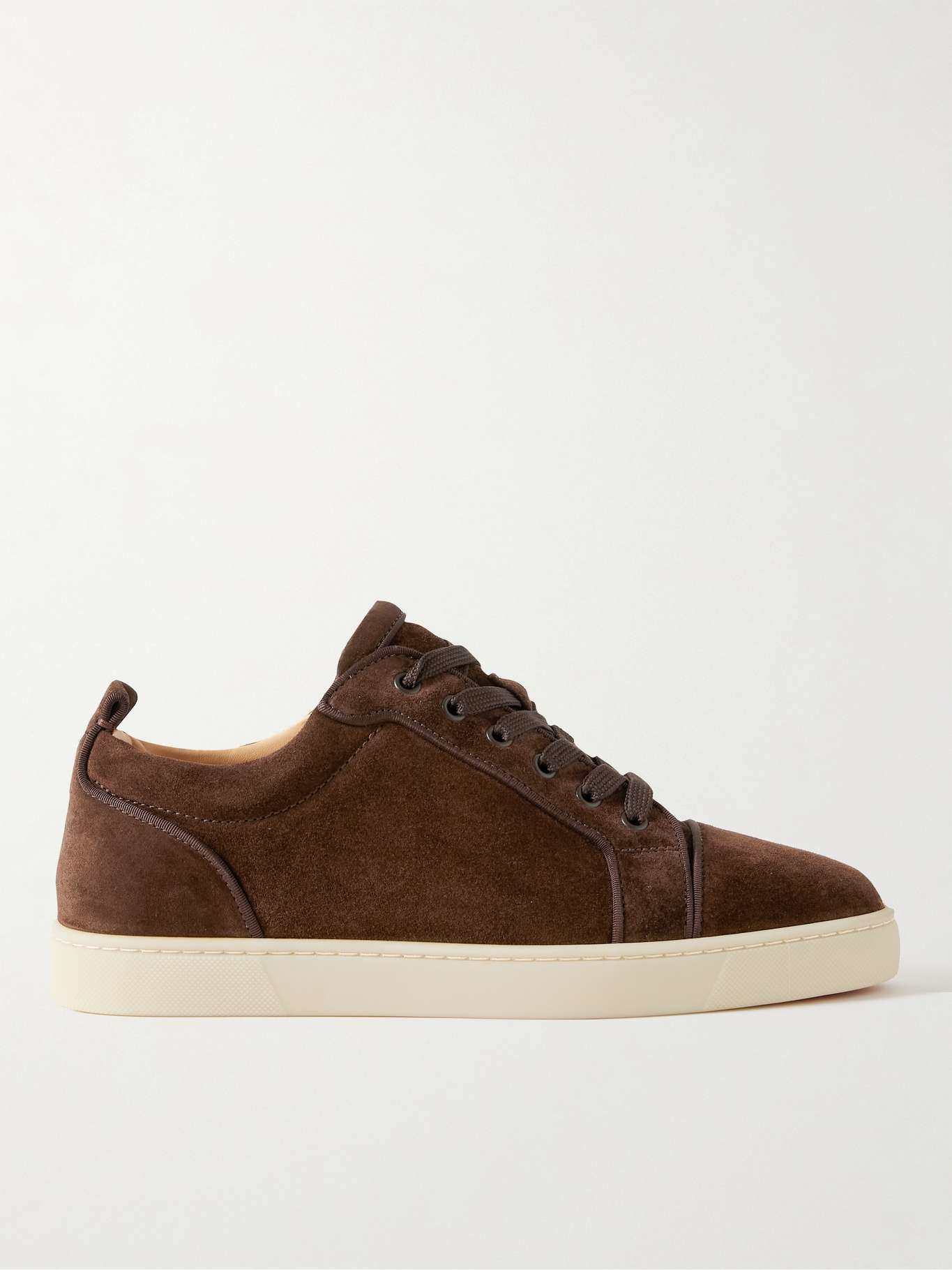 Christian Louboutin's 'Louis Junior' sneakers have an understated, low-top shape that subtly channels vintage styles. Made from supple suede, they have rounded toes and are trimmed with grosgrain. The off-white rubber soles contrast the dark-brown uppers.