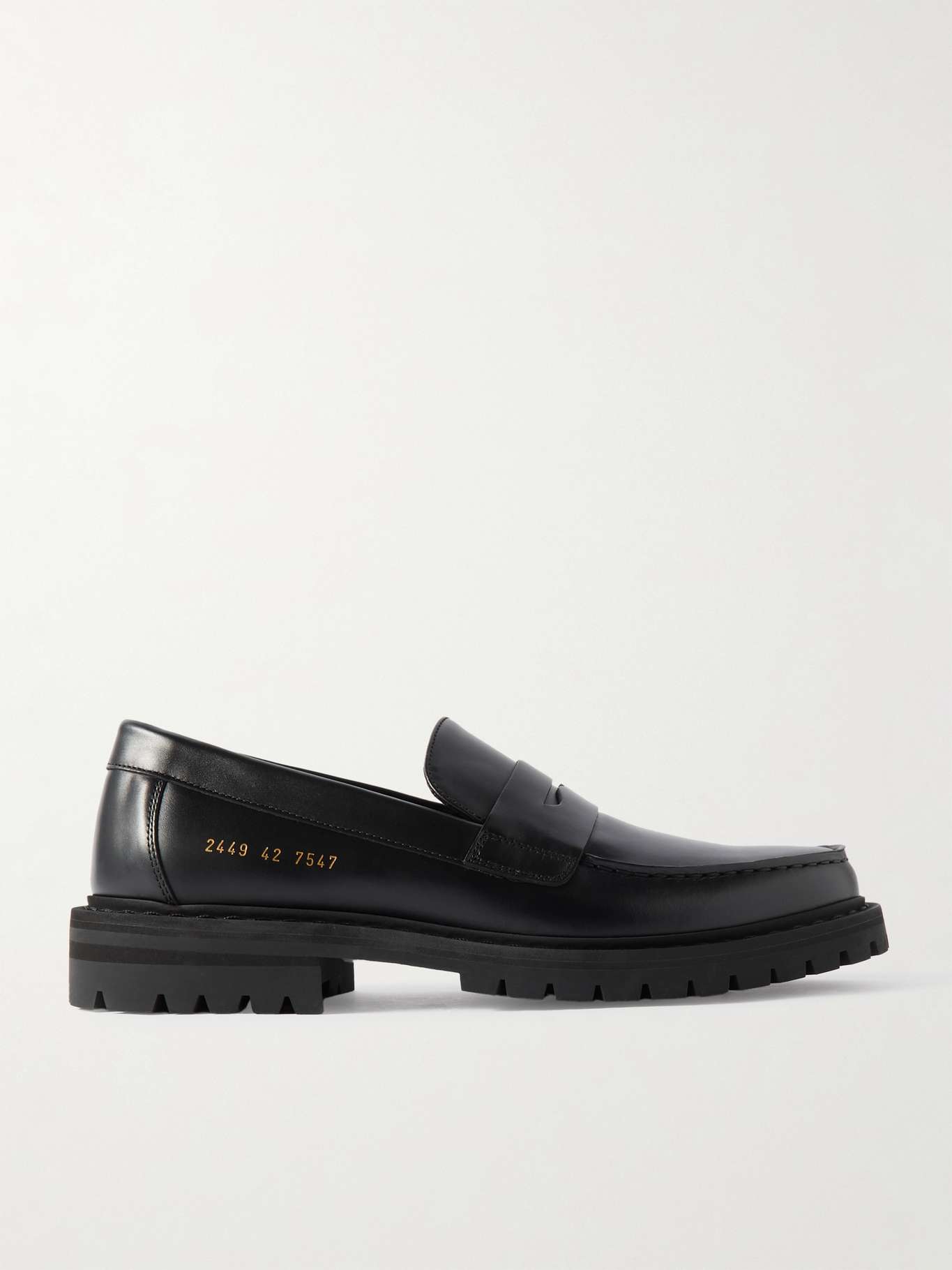 The signature gold serial number on Common Projects' footwear represents the style, size and colour code specific to each design. Crafted in Italy from smooth leather, these loafers have traditional penny slots and rest on chunky rubber soles. Wear yours with jeans or tailored trousers.