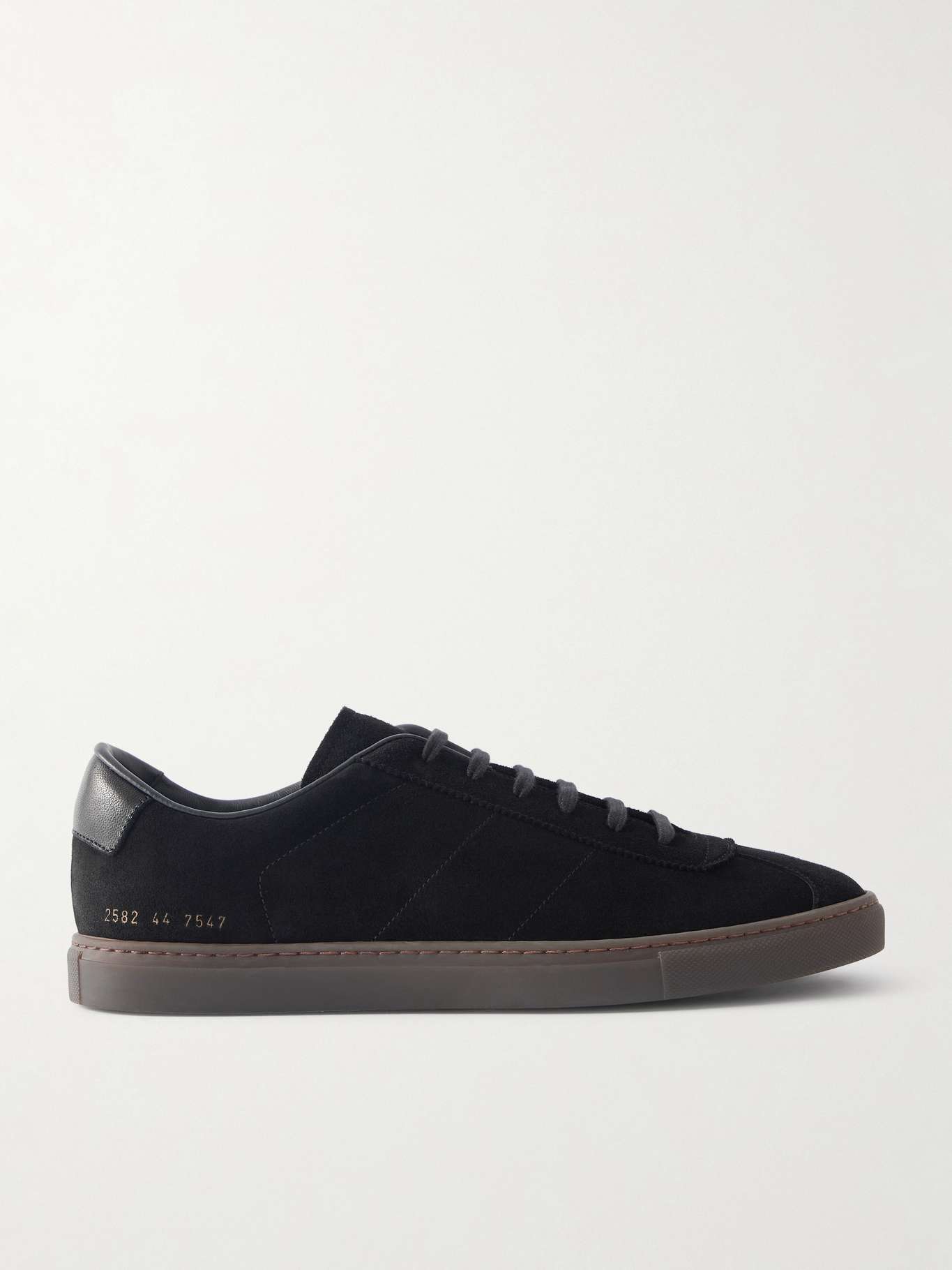 EXCLUSIVE AT MR PORTER. Common Projects' sneakers are made from waxed-suede in classic black. They have a leather trim at the heel and the brand's foil stamp above the sole.
