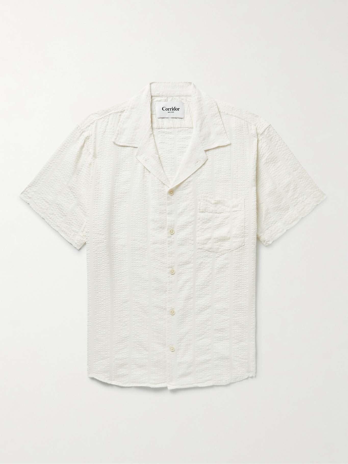 CORRIDOR Camp-Collar Striped Cotton-Blend Seersucker Shirt