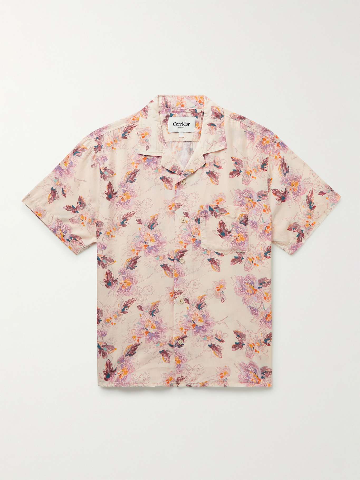 Corridor's 'Novella' shirt is printed with a colourful floral pattern that looks as if it were sketched by hand. It's cut from soft Lyocell and has a relaxed camp collar.