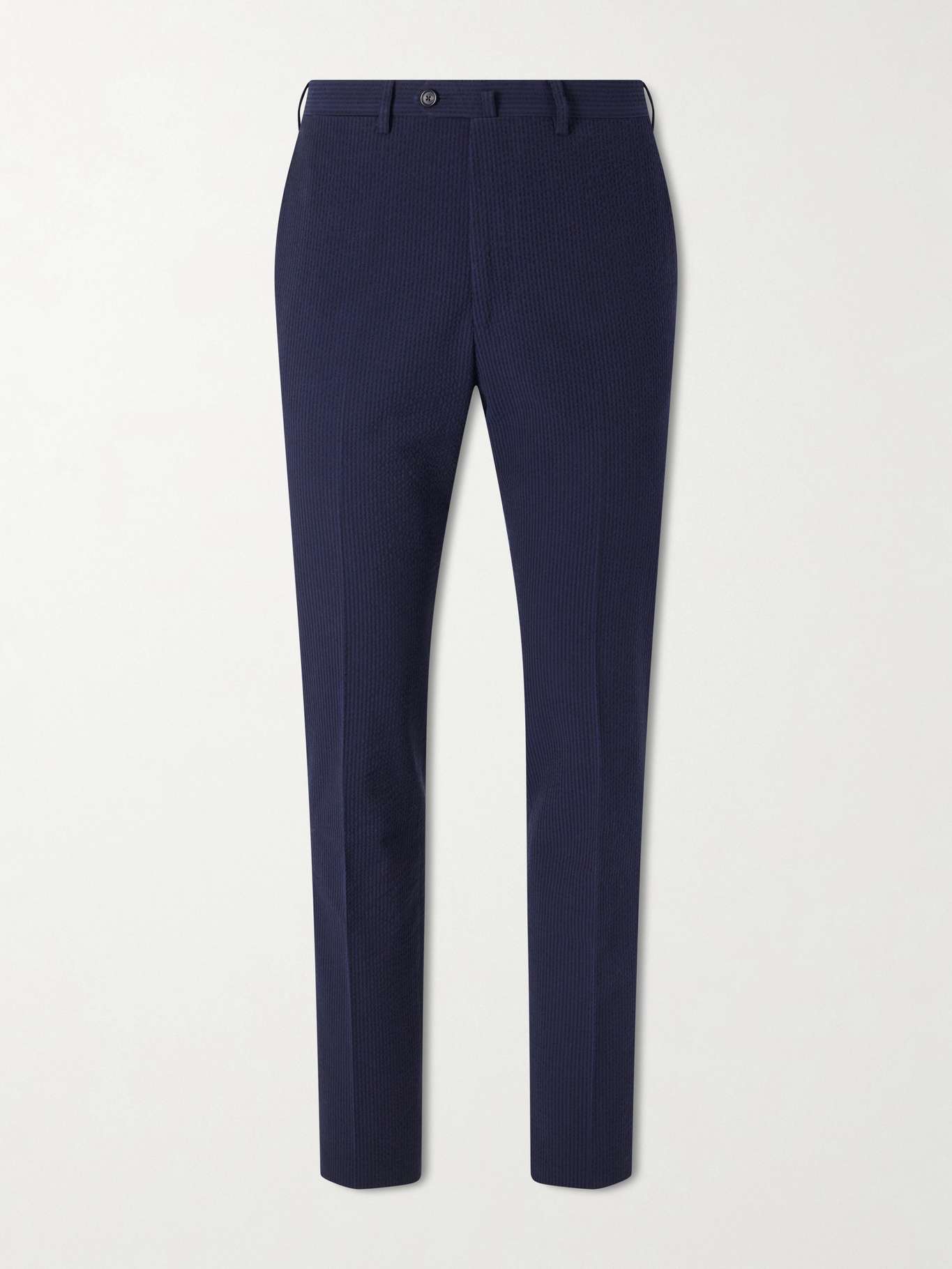 DE PETRILLO Straight-Leg Cotton-Seersucker Suit Trousers
