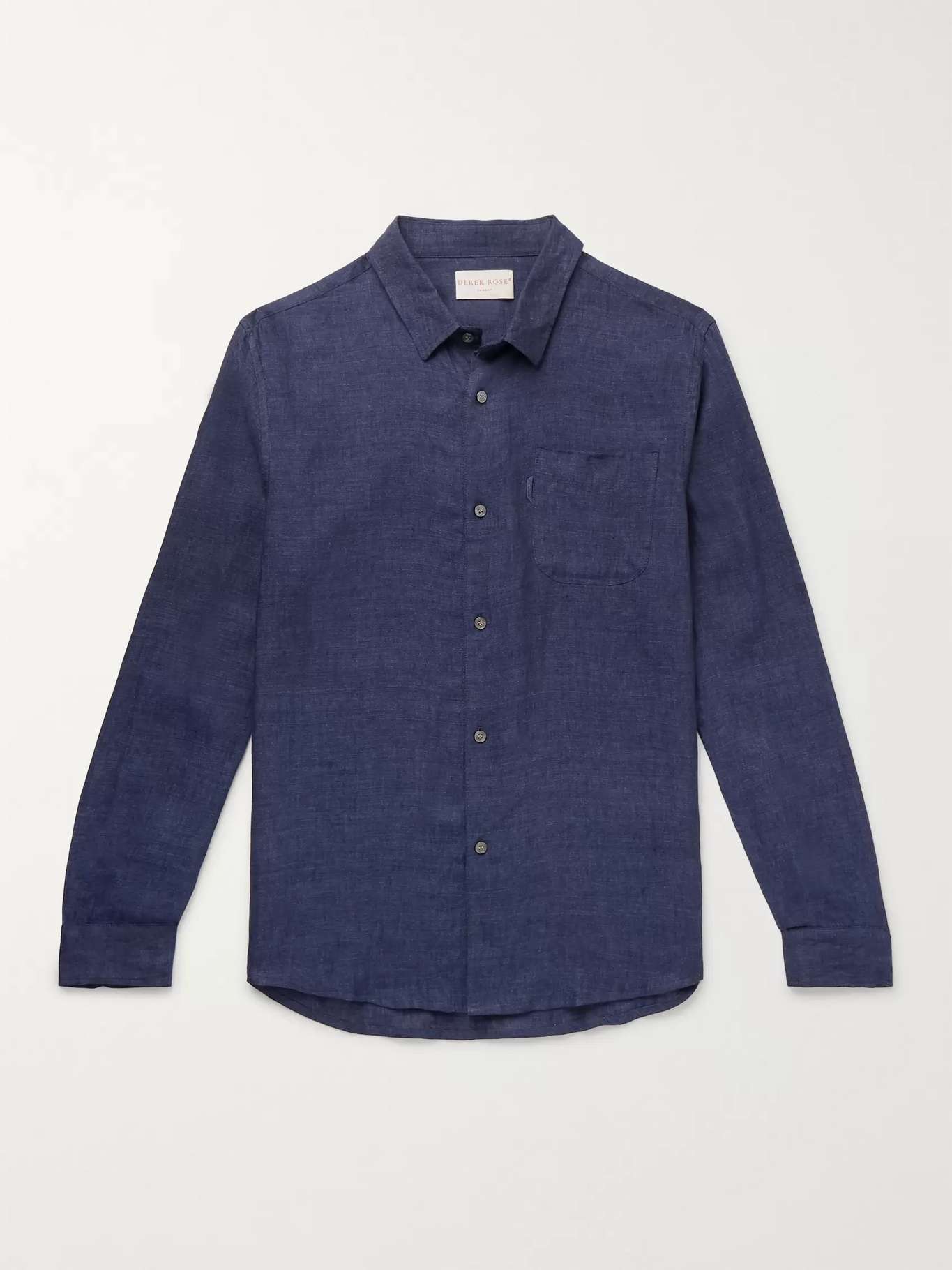We're not surprised Derek Rose named this shirt 'Monaco' – it's perfect for a visit to the Mediterranean coast during the peak of summer. This lightweight piece is tailored from linen woven using navy and white yarns that create a handsome mélange effect and is finished with lustrous mother-of-pearl buttons. There's even a nifty locker loop at the back, so you can hang it up when you're changing at the beach or pool. Shown here with Derek Rose swim shorts, Mulo shoes, Mikia bracelet.