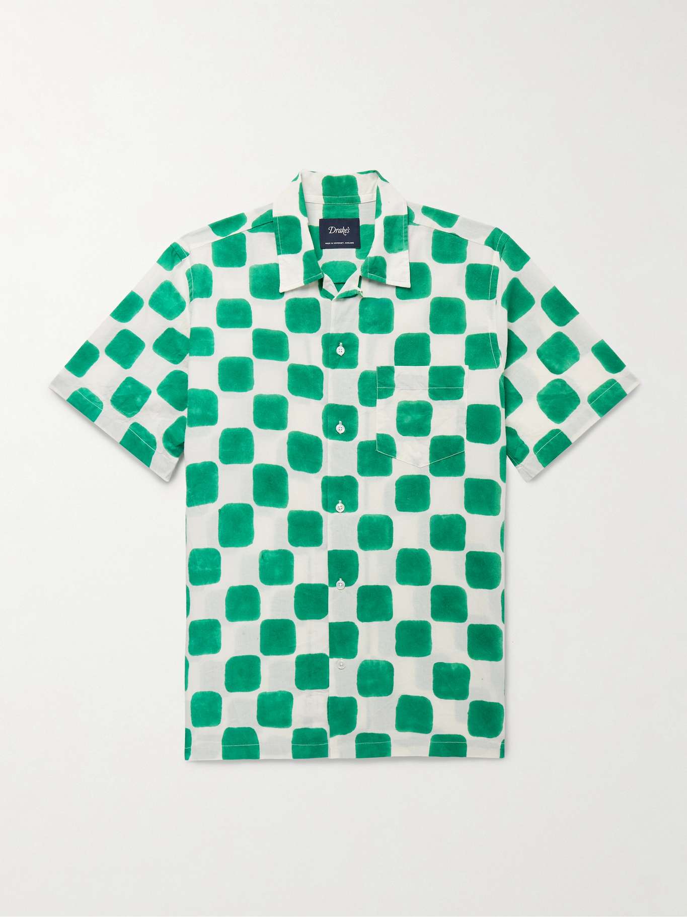 Drake’s has never been one to shy away from bold colours or patterns, resulting in fresh pieces like this convertible-collar shirt. It’s handmade from breathable cotton and has a green and white checkerboard print and pearlescent buttons.