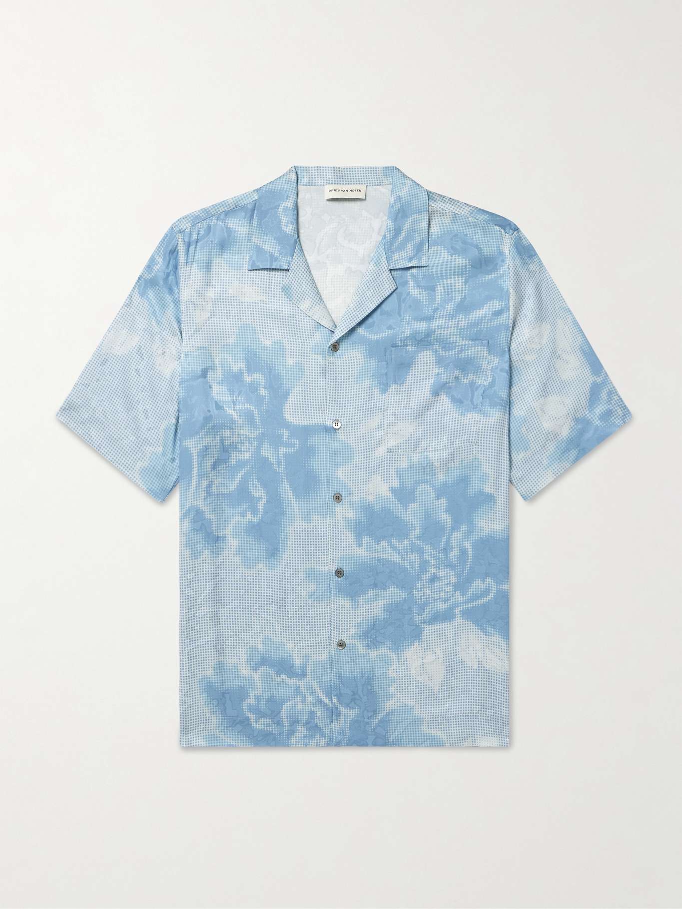 Dries Van Noten's designs are a masterclass in print and colour. This camp-collar shirt is made from satin that's patterned with pixelated flowers in tonal shades of blue.