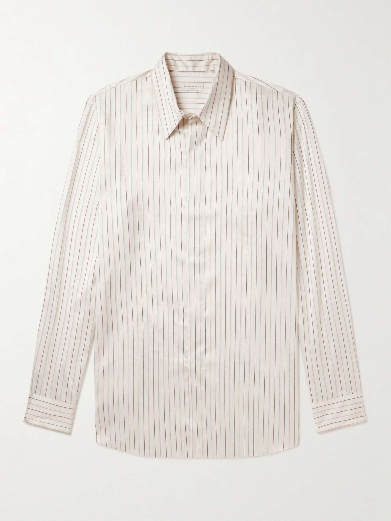 DRIES VAN NOTEN Cutaway-Collar Striped Silk and Cotton-Blend Shirt