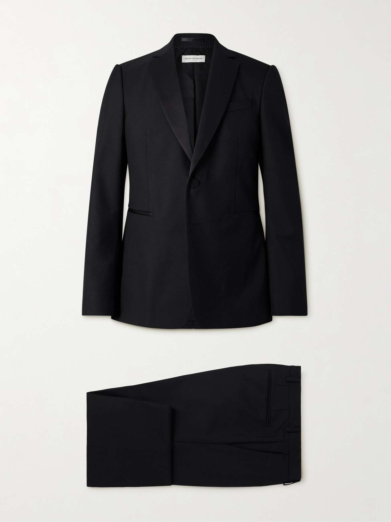 The first piece founder Dries Van Noten made was a blazer and the label is still known for its immaculate tailoring. This wool-blend twill suit features a single-breasted jacket with sateen lapels and straight-leg trousers with unfinished hems. Wear yours with a classic shirt and bow tie.