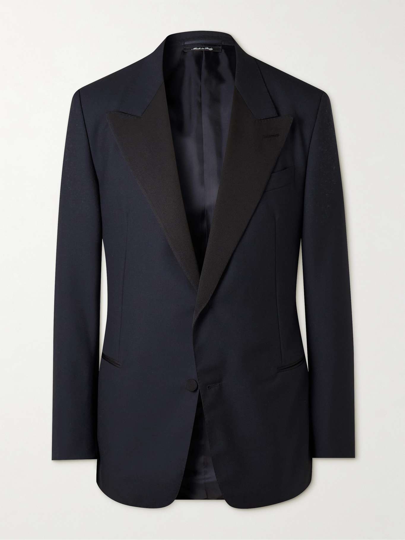 DUNHILL Grosgrain-Trimmed Wool Grain de Poudre Wool Tuxedo Jacket
