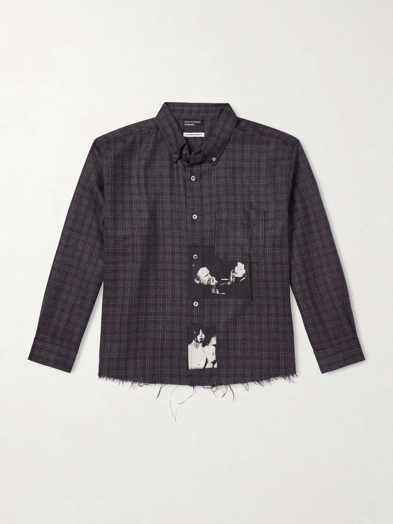 Unexpected prints, finishings and graphics are what make Enfants Riches Déprimés' rebellious clothing stand out in a crowd. This button-down collar shirt is made from checked virgin wool-flannel that's detailed with photographic patches and has a distressed hem.