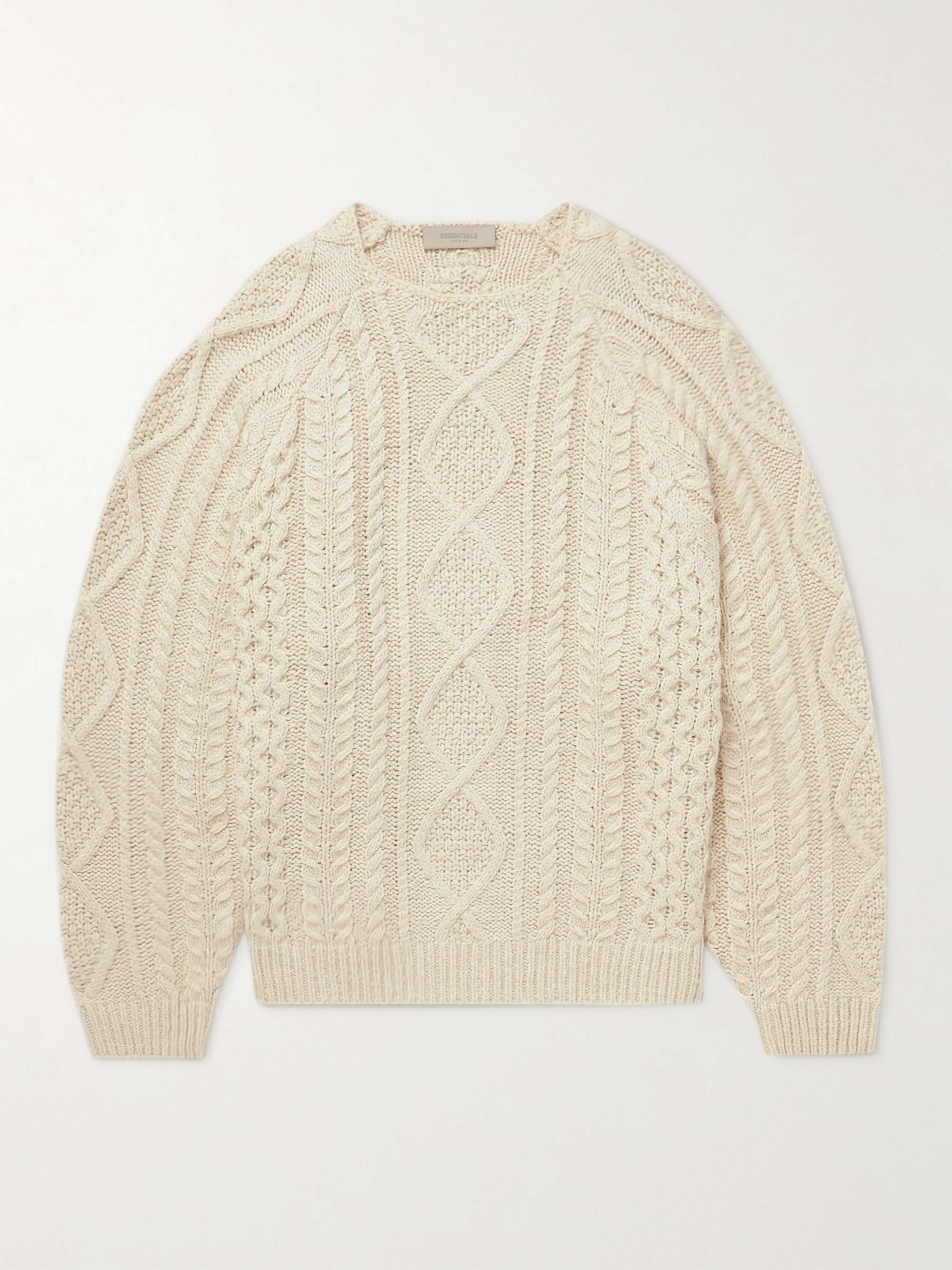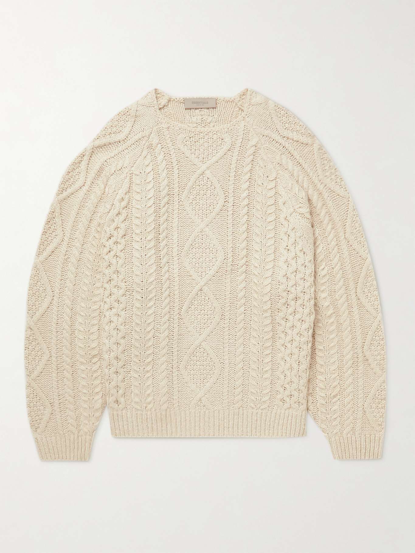 • FEAR OF GOD ESSENTIALS Oversized Logo-Appliquéd Cable-Knit Cotton-Blend Sweater