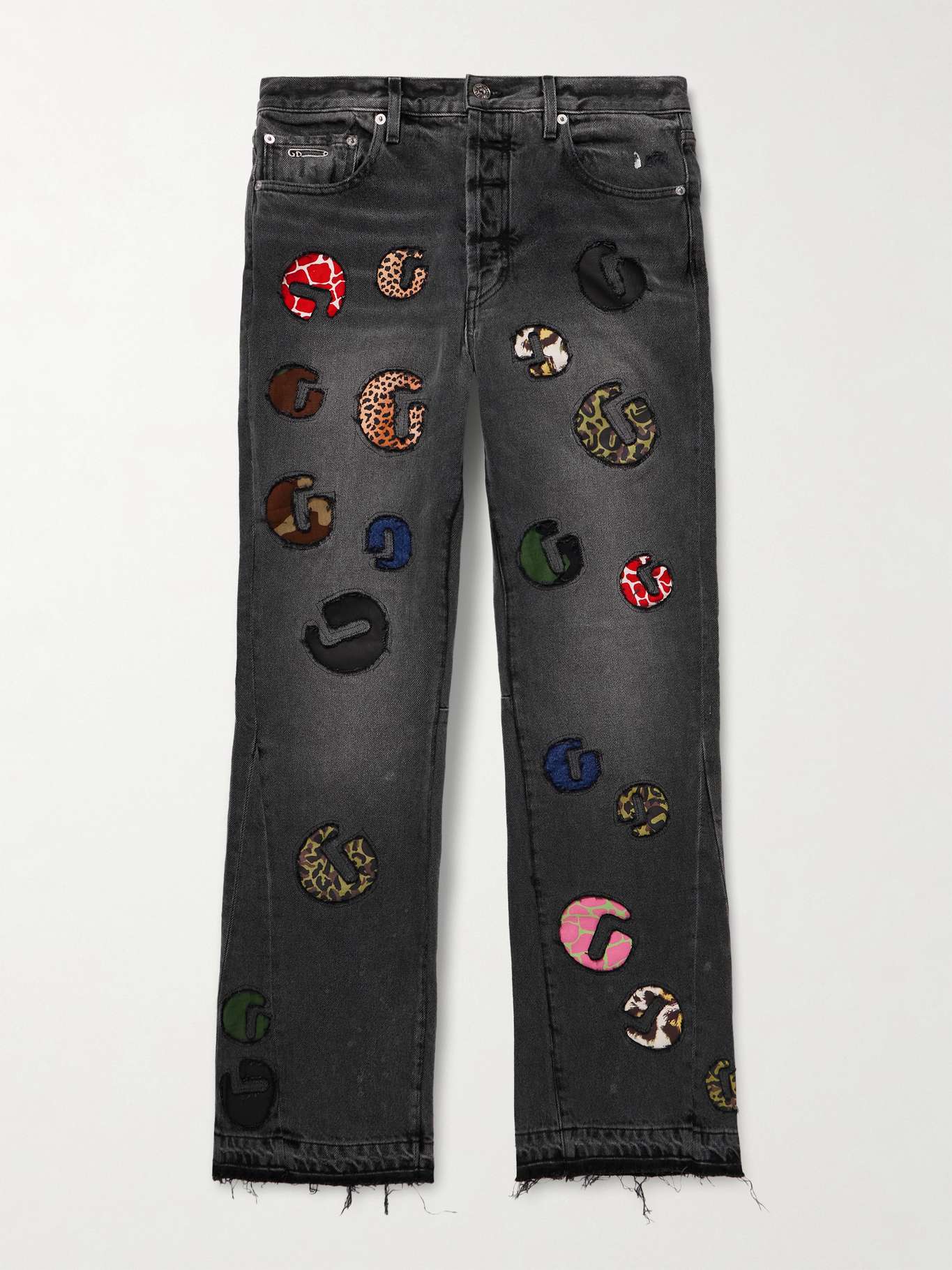 Before it became a brand, Gallery Dept. was a creative space in downtown Los Angeles, where founder Josué Thomas would collaborate with friends and family. Designed with the same ethos as the early years, these jeans are made from distressed denim and appliquéd with clusters of 'G'-shaped patches along the front and back. They're layered with seams from pre-worn pairs and have wide, flared hems.