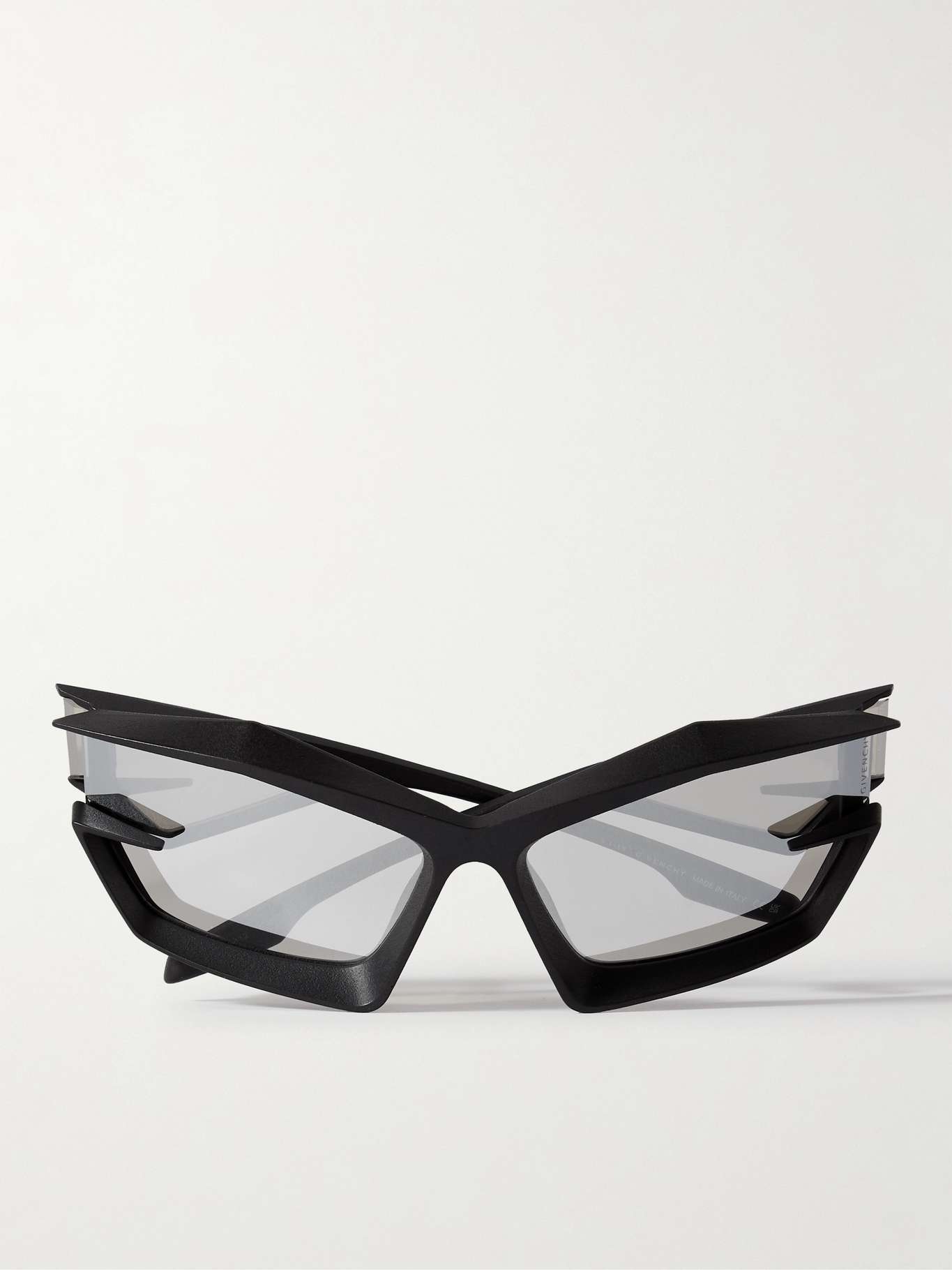 It's clear to see the futuristic inspirations behind Givenchy's sunglasses. They're made from sturdy nylon with exaggerated cat-eye frames and feature small windows at the temples. Each one of the four lenses is tinted smoked grey and provides full-spectrum protection.