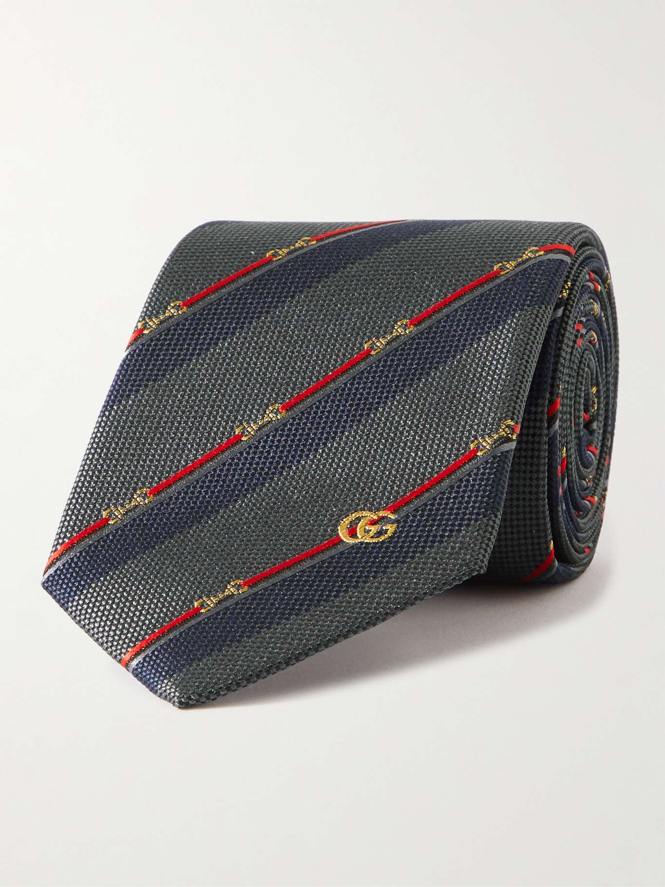 GUCCI 7cm Embroidered Striped Silk-Jacquard Tie