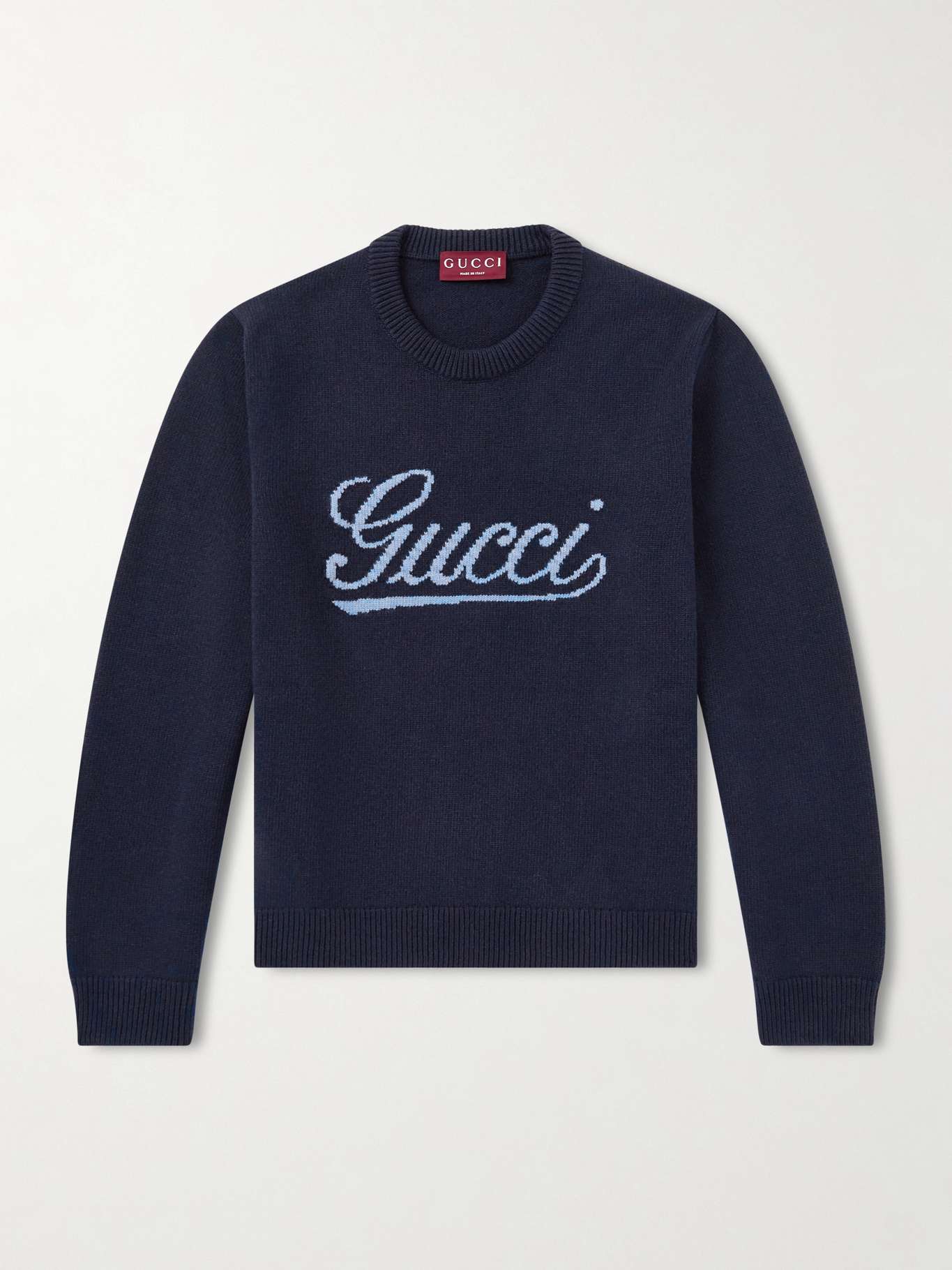 Gucci's sweater is intarsia-knitted with its script logo, introduced in the 1920s. It's made from wool with plenty of room through the body and has ribbed trims to keep its structure.