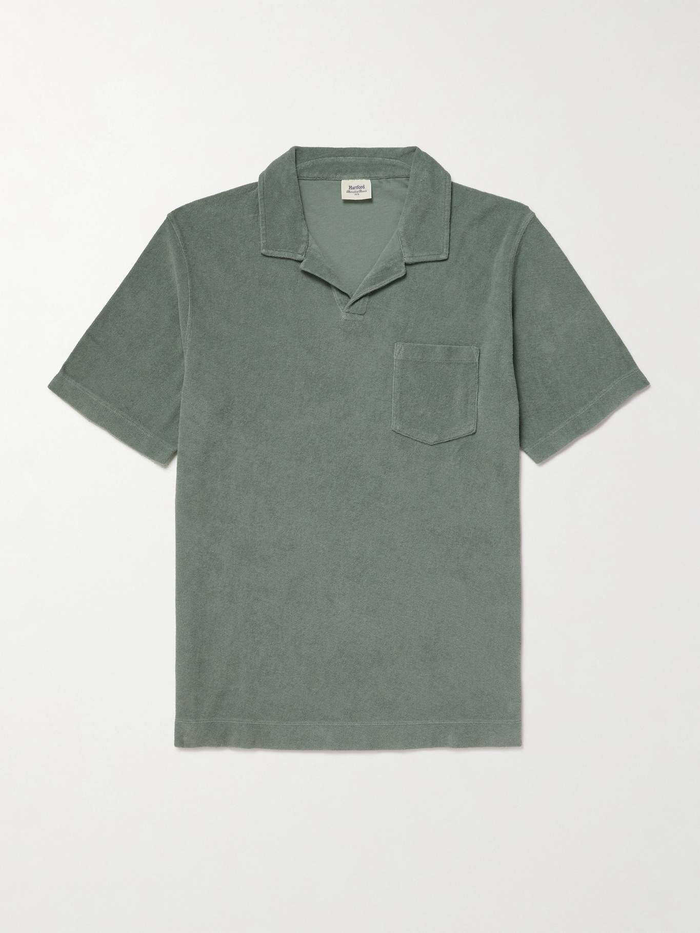 Hartford's polo shirt is made from super absorbent cotton-terry, so it's a great one to wear by the pool. The open collar and front pocket are considered touches.