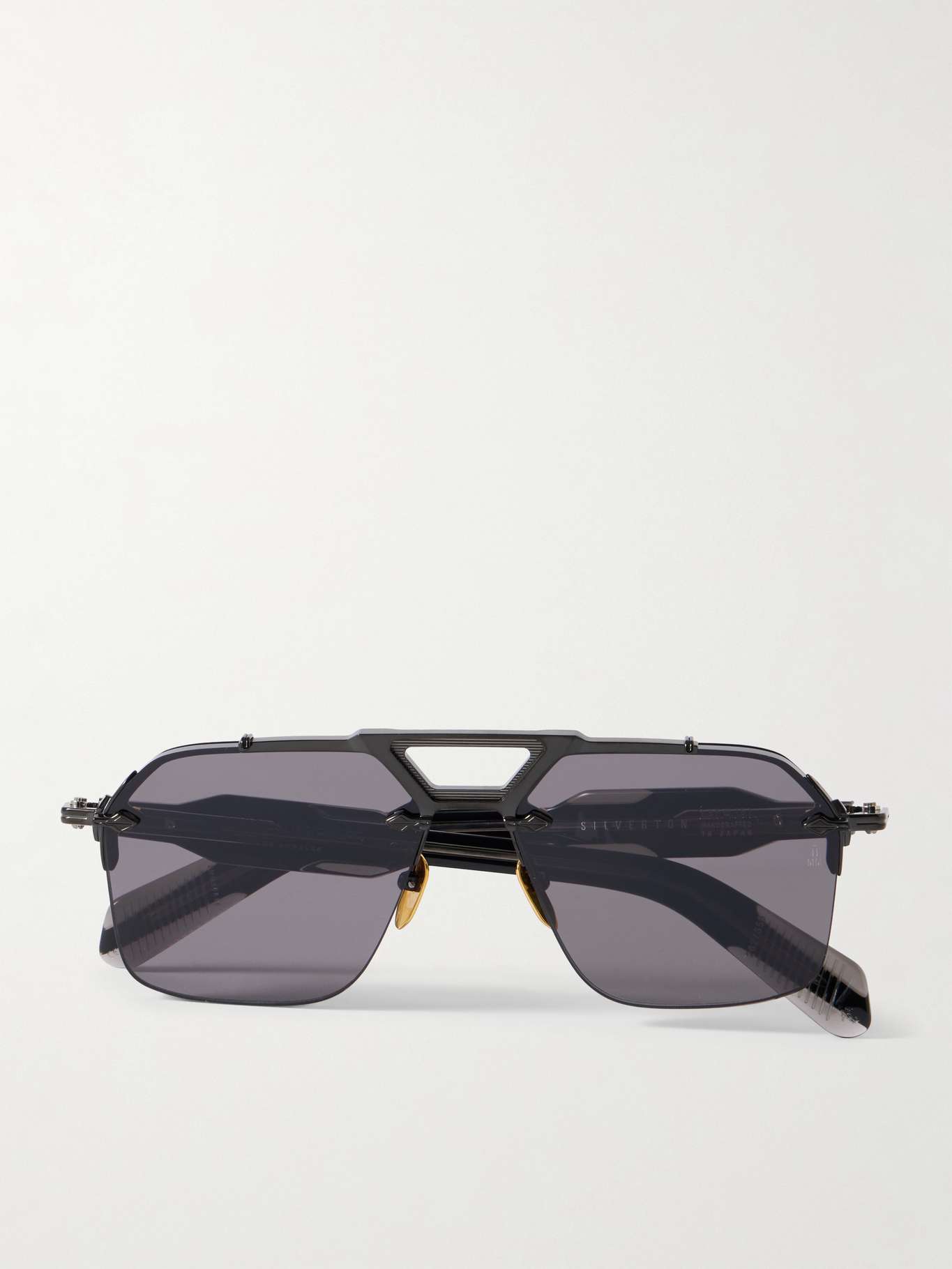 Jacques Marie Mage's sunglasses are produced in limited quantities – once they're out of stock, they're never to be seen again. One of 350, this 'Silverton' pair has been handmade in Japan from acetate and has gold-tone metal accents on the arms, temples and nose bridge. They're free from rims, so they look a little different from your usual aviator-style frames.