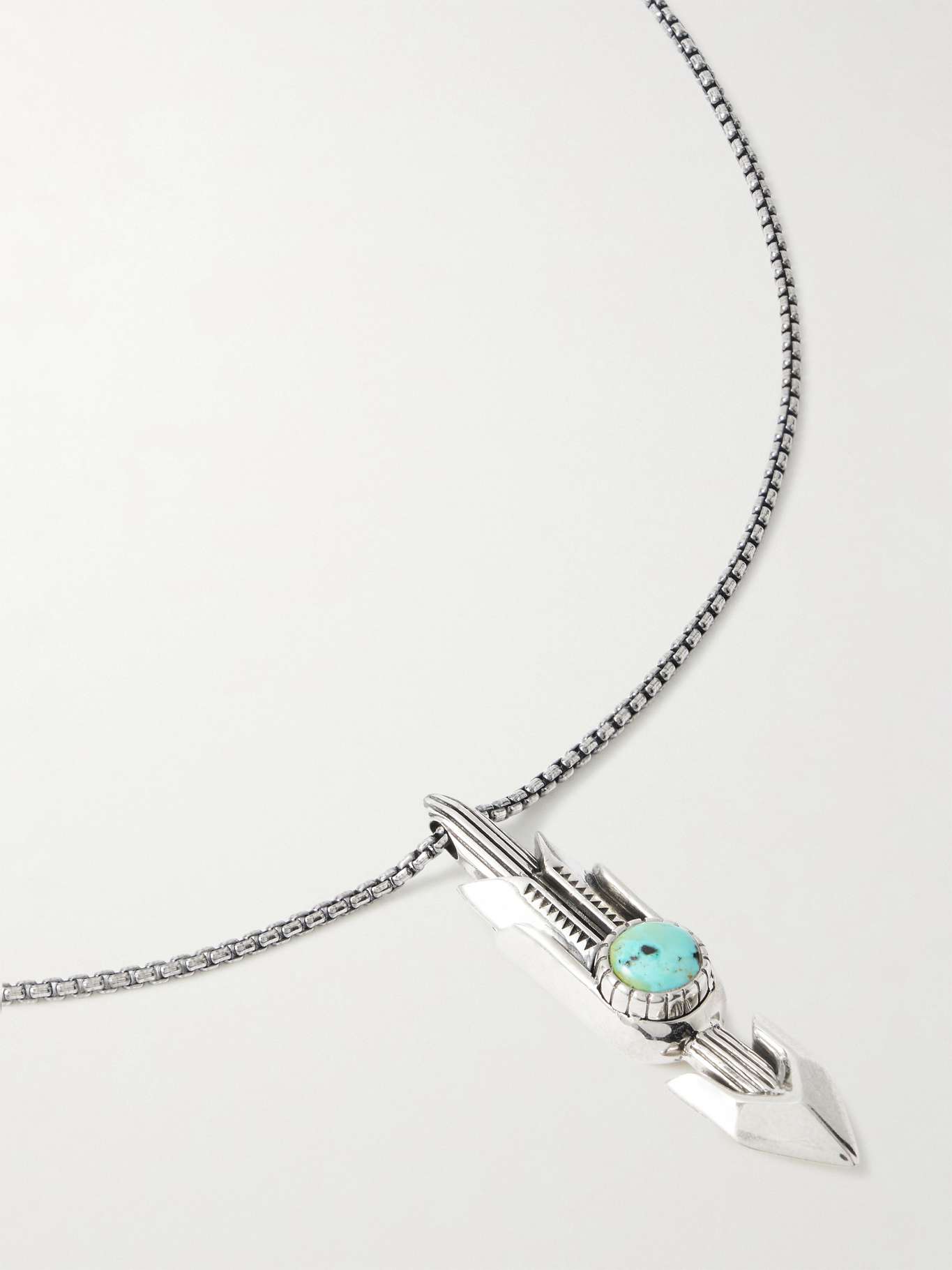 This 'Natrona' necklace is from Jacques Marie Mage's 'The Last Frontier' capsule, inspired by the American Southwest. Limited to 250 pieces, it's been handmade in LA from polished sterling silver and is strung with a sculptural arrowhead pendant set with an Apache Blue turquoise inlay.