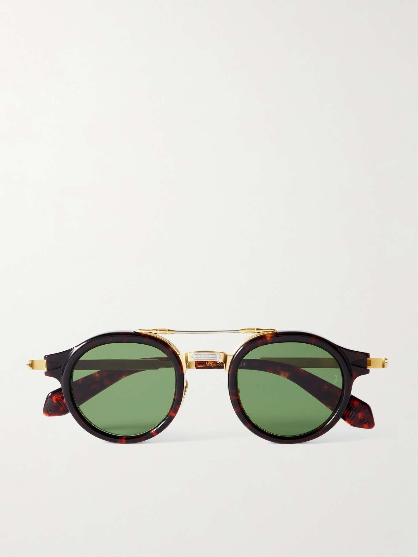 Jacques Marie Mage's 'Delage' sunglasses take their cues from the style of the '50s. Produced in a limited batch of 400, they've been made in Japan from a combination of acetate and gold-tone metal and have Art Deco-inspired embellishments at the arms, bridge and brow bar.