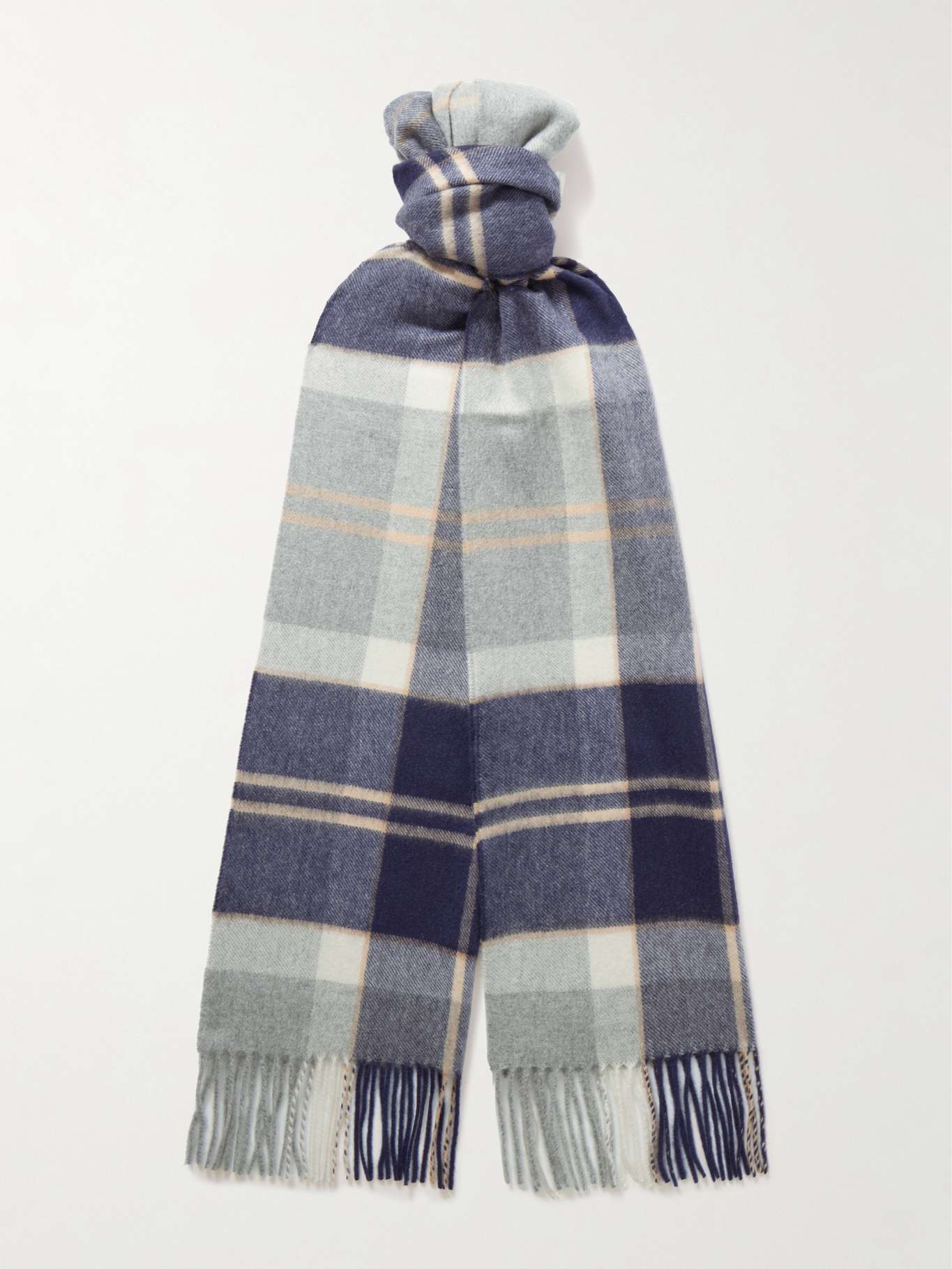 JOHNSTONS OF ELGIN Fringed Checked Cashmere Scarf