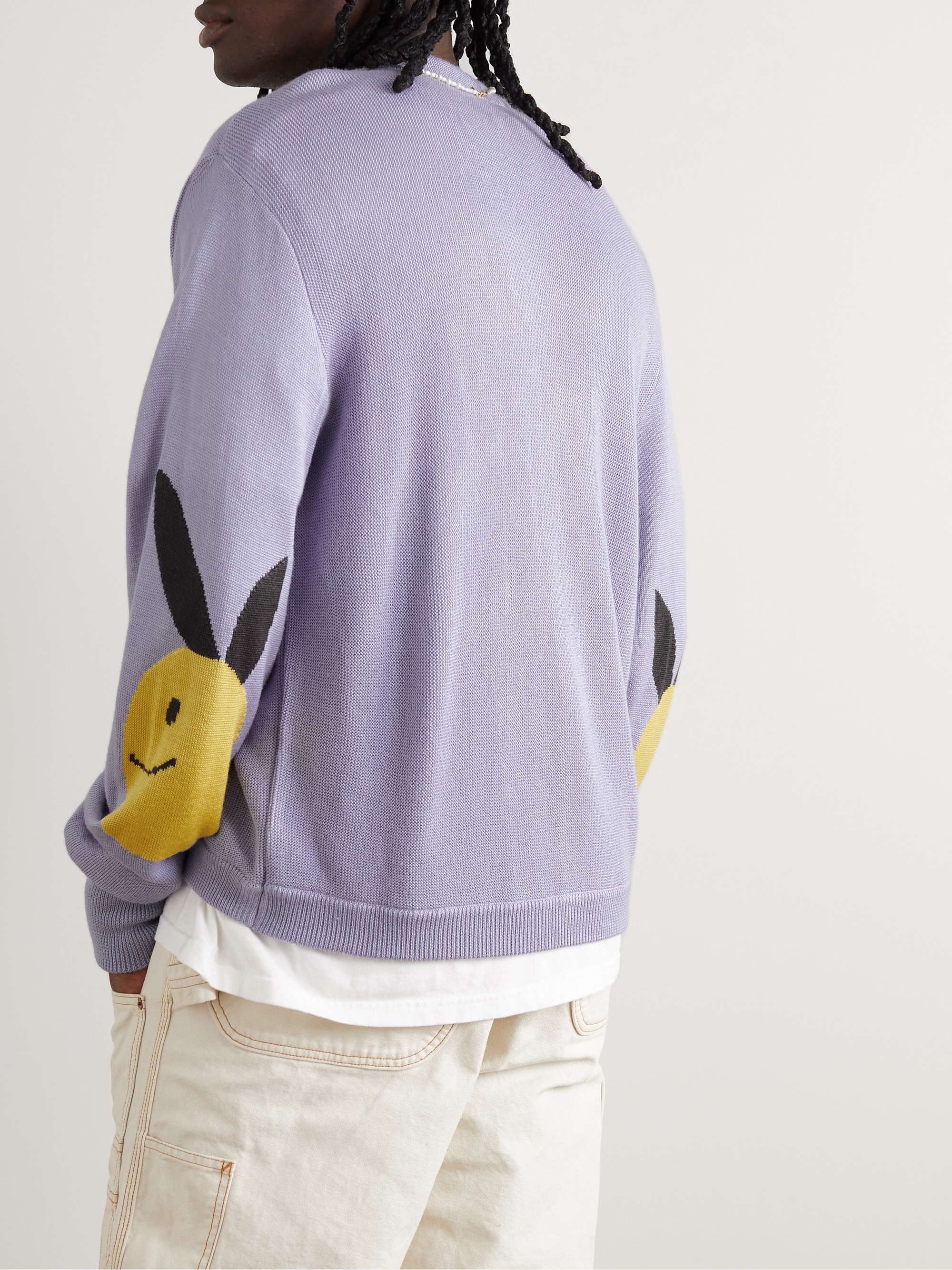 Japanese brand KAPITAL knows a thing or two about putting a smile on your face. Take this cardigan – it's knitted in a mid-gauge handle and has pointy-eared smileys on the elbows.
