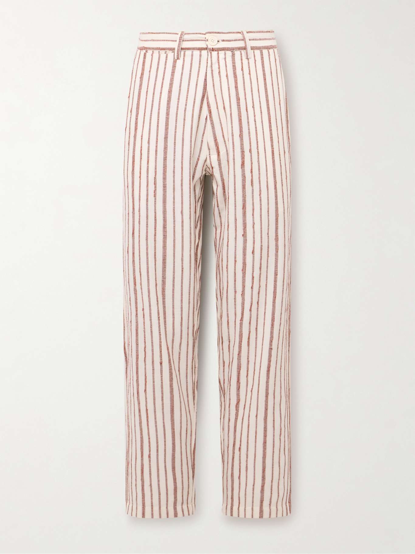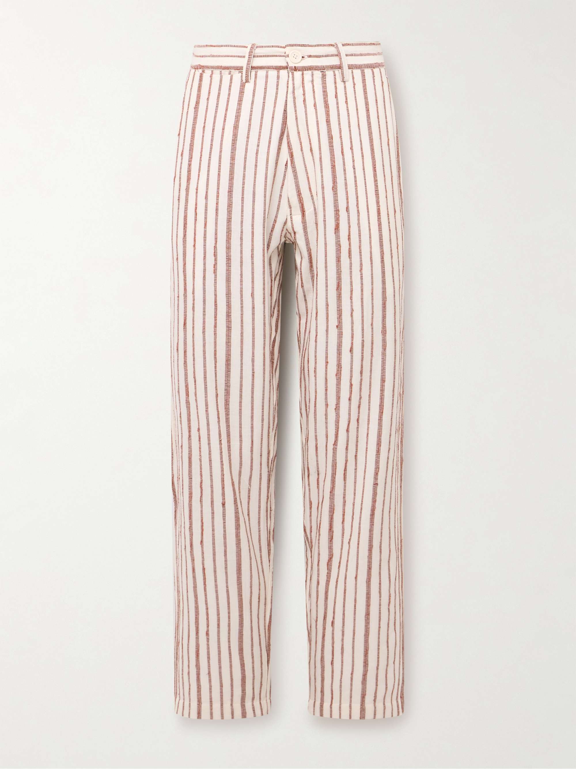 KARDO Thomas Straight-Leg Embroidered Striped Cotton Suit Trousers