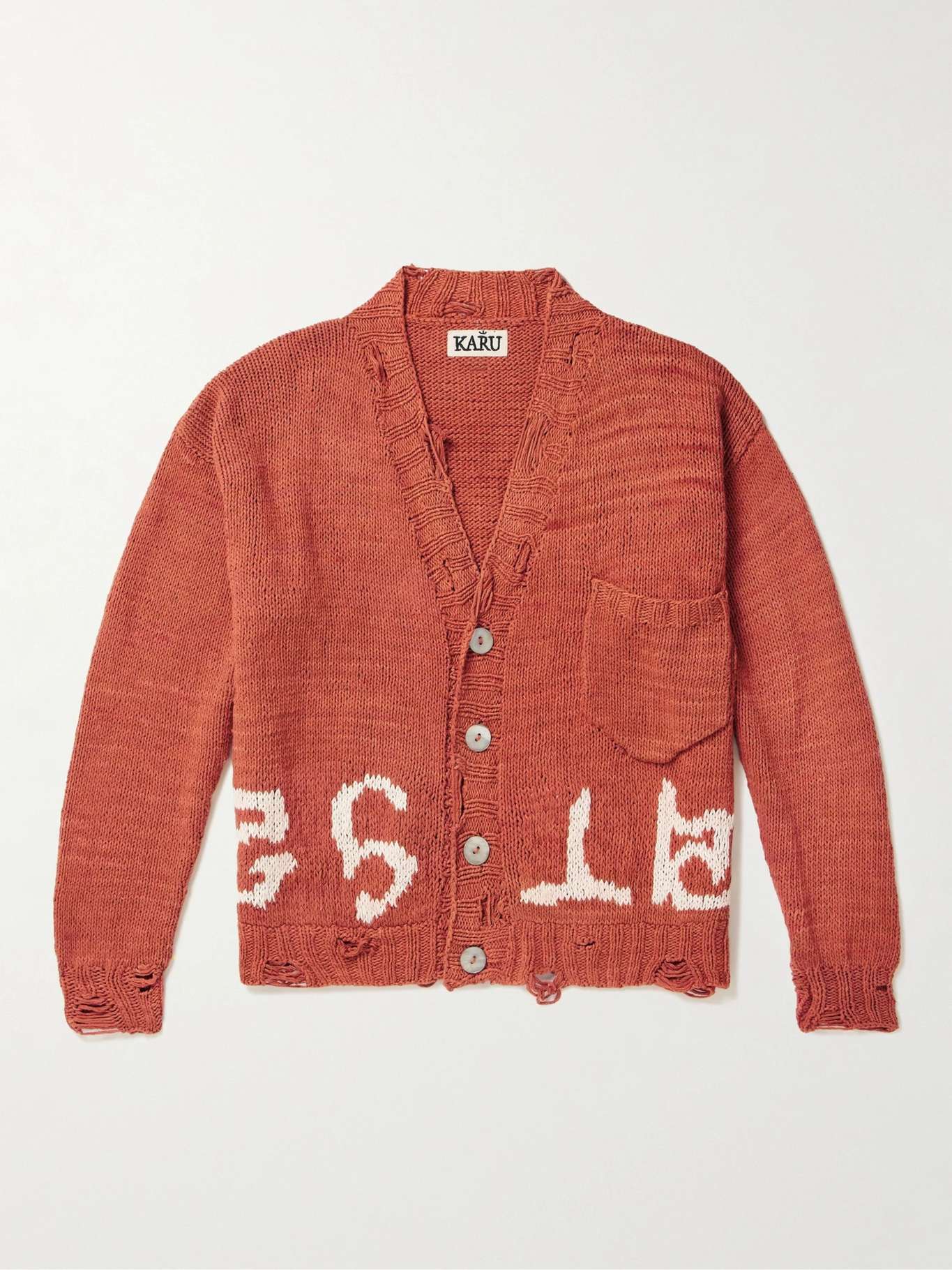 KARTIK RESEARCH Distressed Intarsia Cotton Cardigan