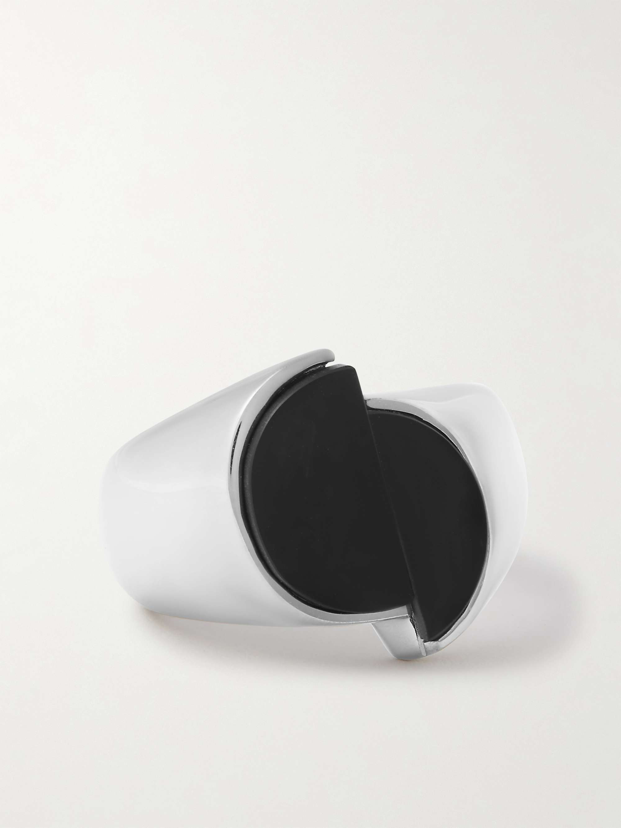 LANVIN Platinum-Plated Silver Onyx Ring