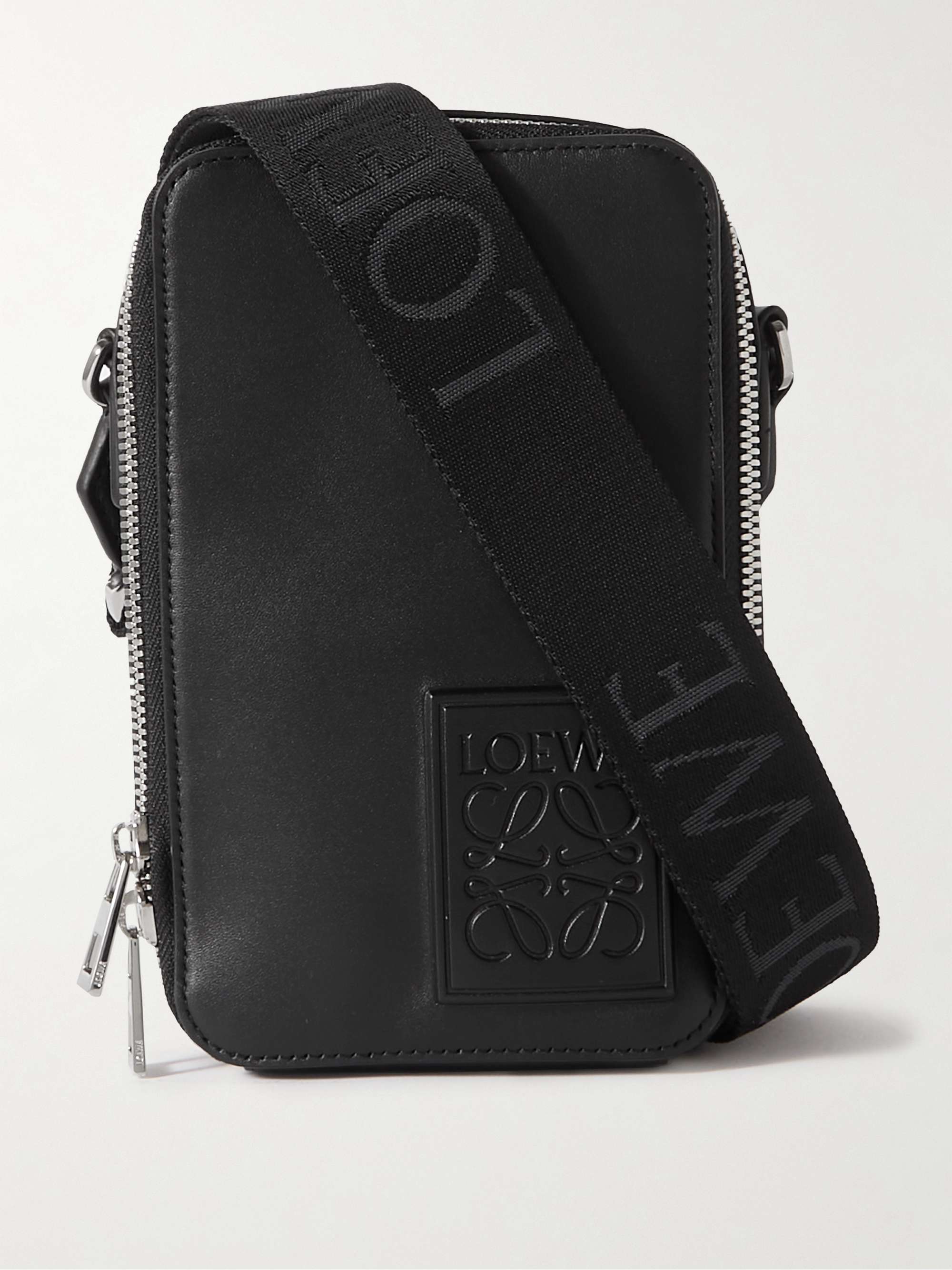 • LOEWE Logo-Debossed Leather Messenger Bag