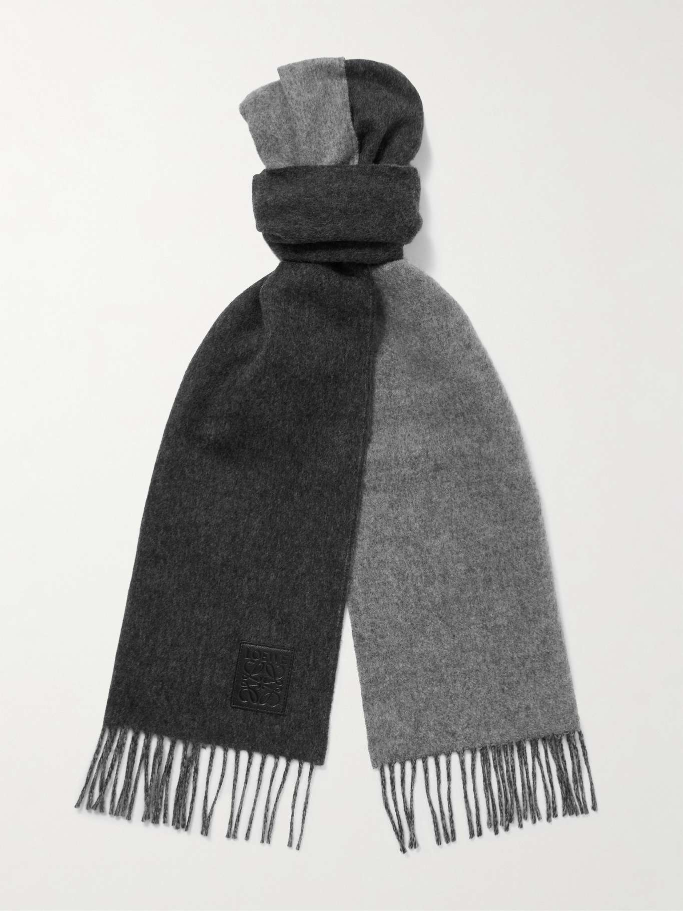 LOEWE Logo-Appliquéd Fringed Wool and Cashmere-Blend Scarf