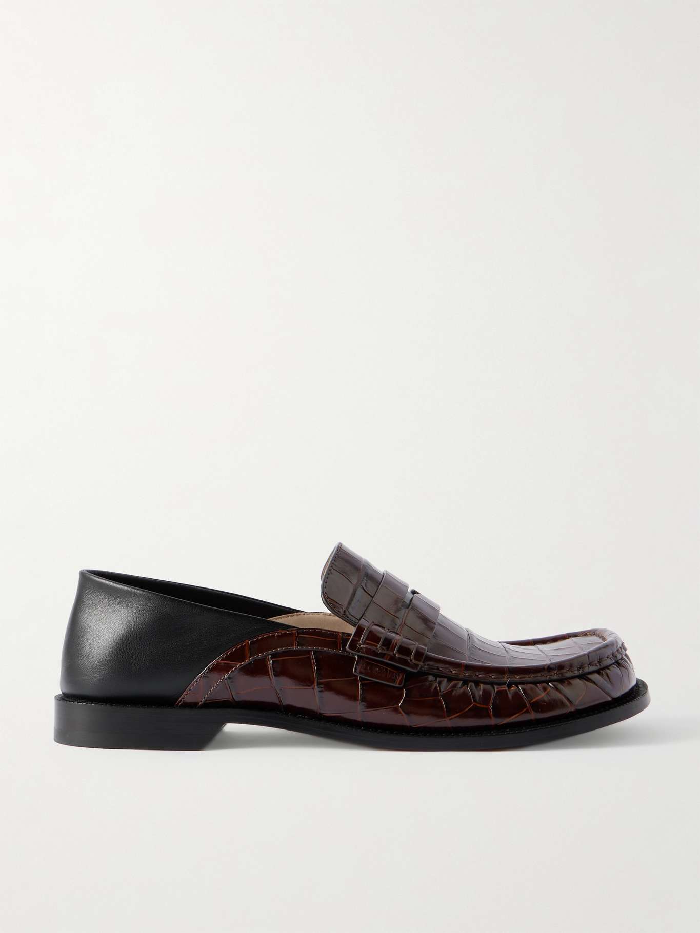 LOEWE Campo Collapsible-Heel Croc-Effect Leather Loafers