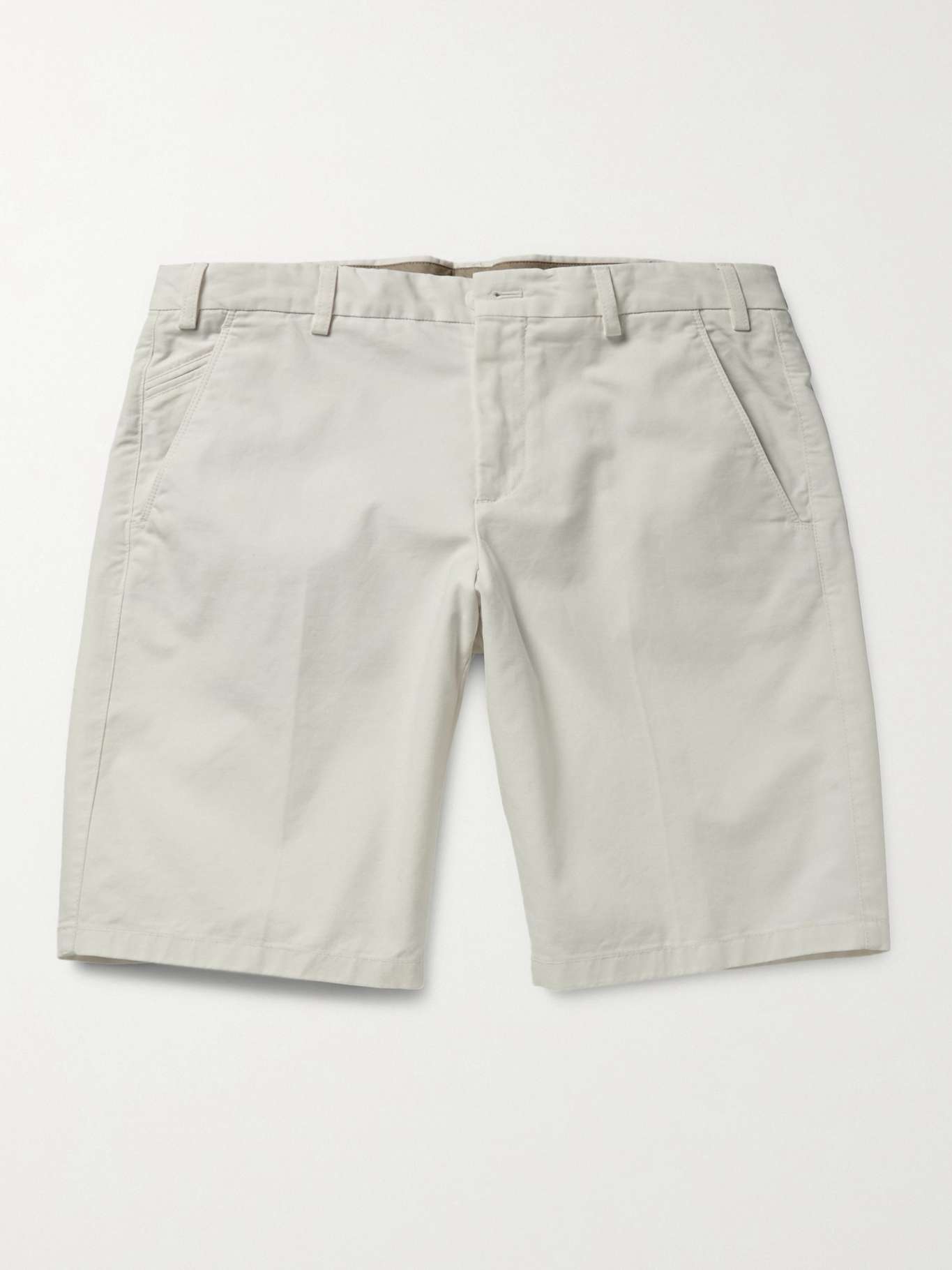- Off-white stretch-cotton Bermuda shorts