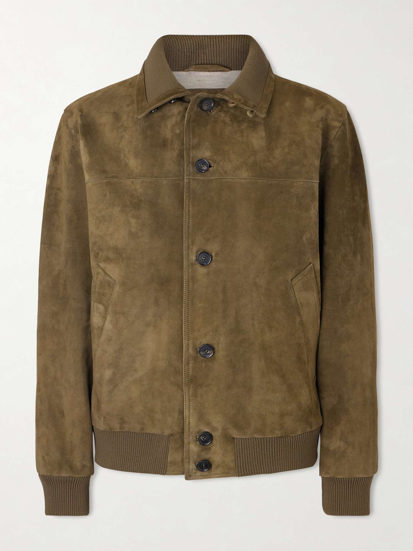 LORO PIANA Ribbed Knit-Trimmed Suede Bomber Jacket