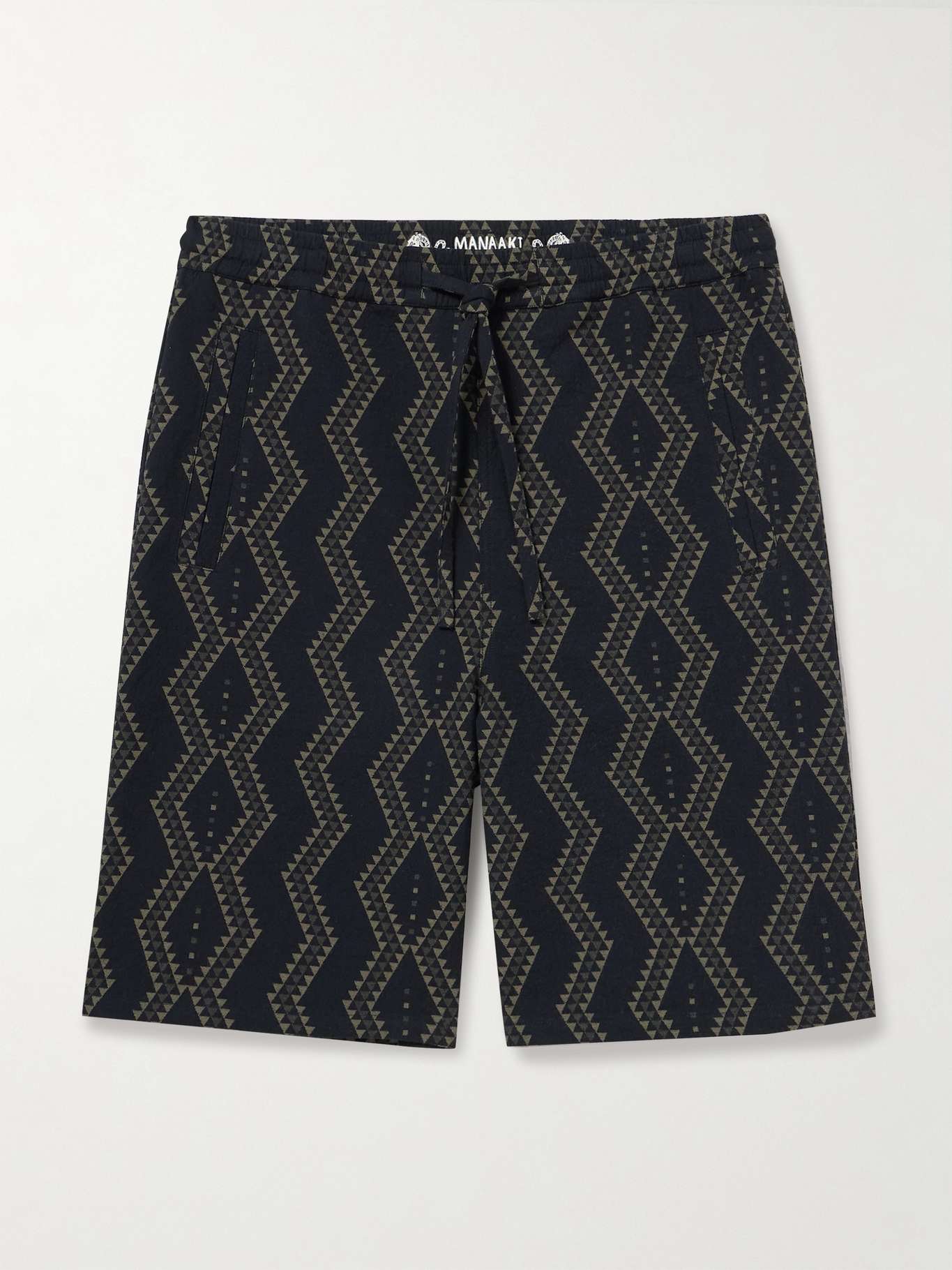 EXCLUSIVE AT MR PORTER. Manaaki's garments are an extension of founder Kat Tua's Māori heritage, so you'll notice indigenous-inspired patterns throughout her collections. These lightweight cotton 'Tai' shorts are jacquard-woven in a geometric motif and have an adjustable drawstring waistband. Wear yours with the coordinating shirt from our edit.