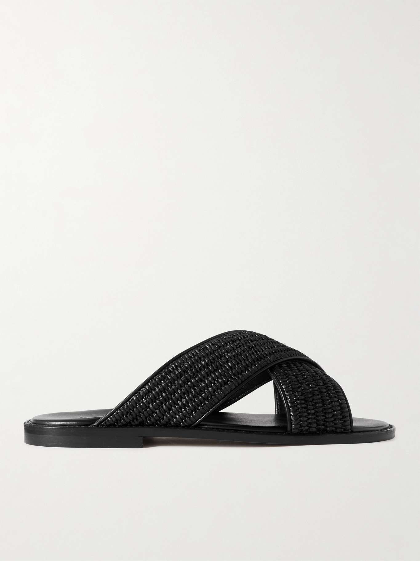 MANOLO BLAHNIK Otawi Woven Raffia and Leather Sandals