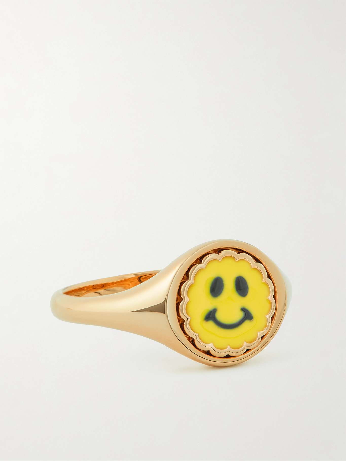 Designed to work with any coin from Maria Black's 'POP' collection, this 'Karlie' signet ring is crafted from gold-plated sterling silver. It's set with the emoji-inspired 'Happy' style that's detailed with yellow and black resin.