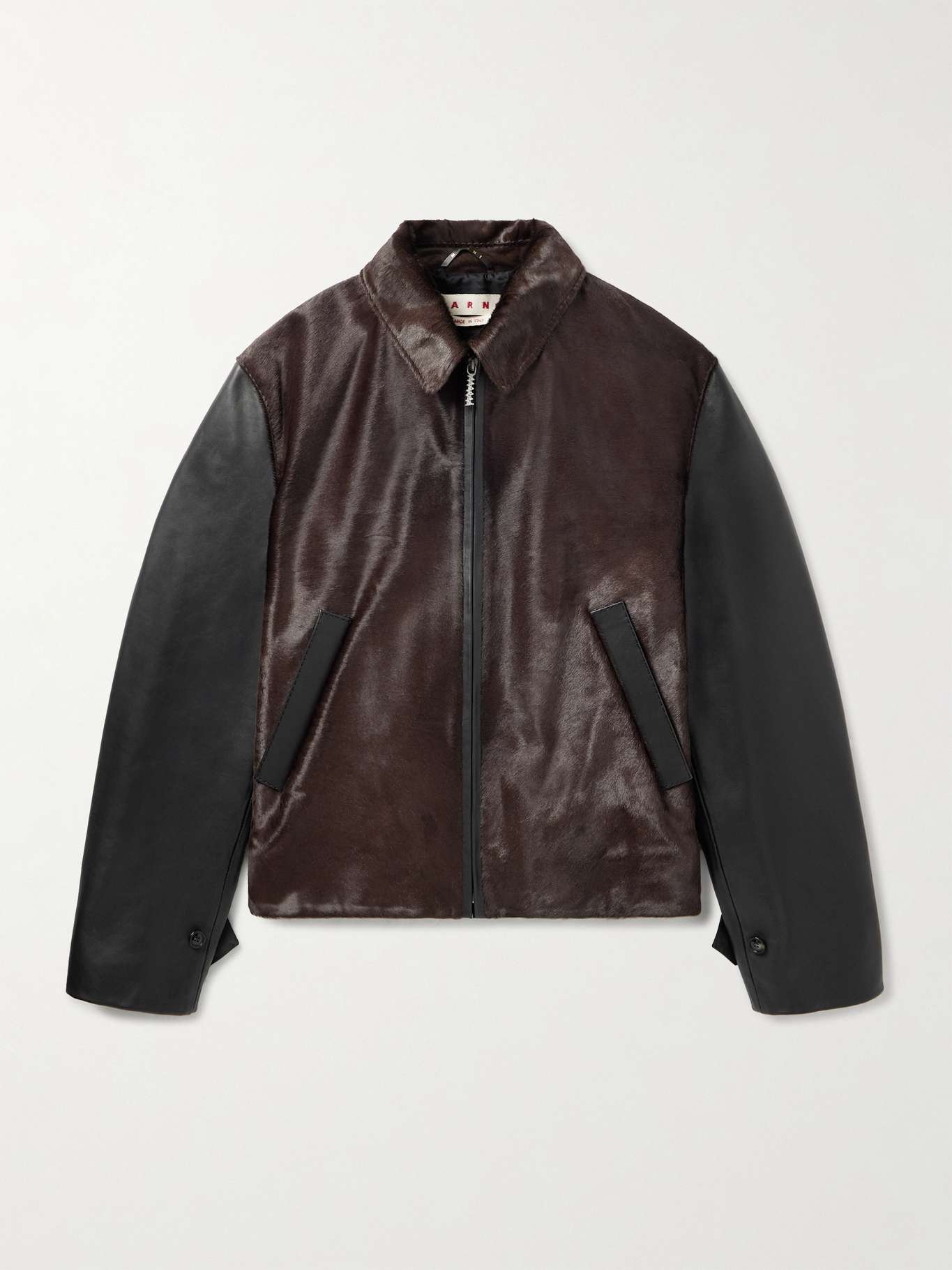 A tactile take on classic biker styles, Marni's jacket is made from fuzzy calf hair and trimmed with leather, including contrasting welt pockets. It has a relaxed shape with a partially elasticated hem and a logo-detailed zip pull. The smooth lining makes for easy layering.