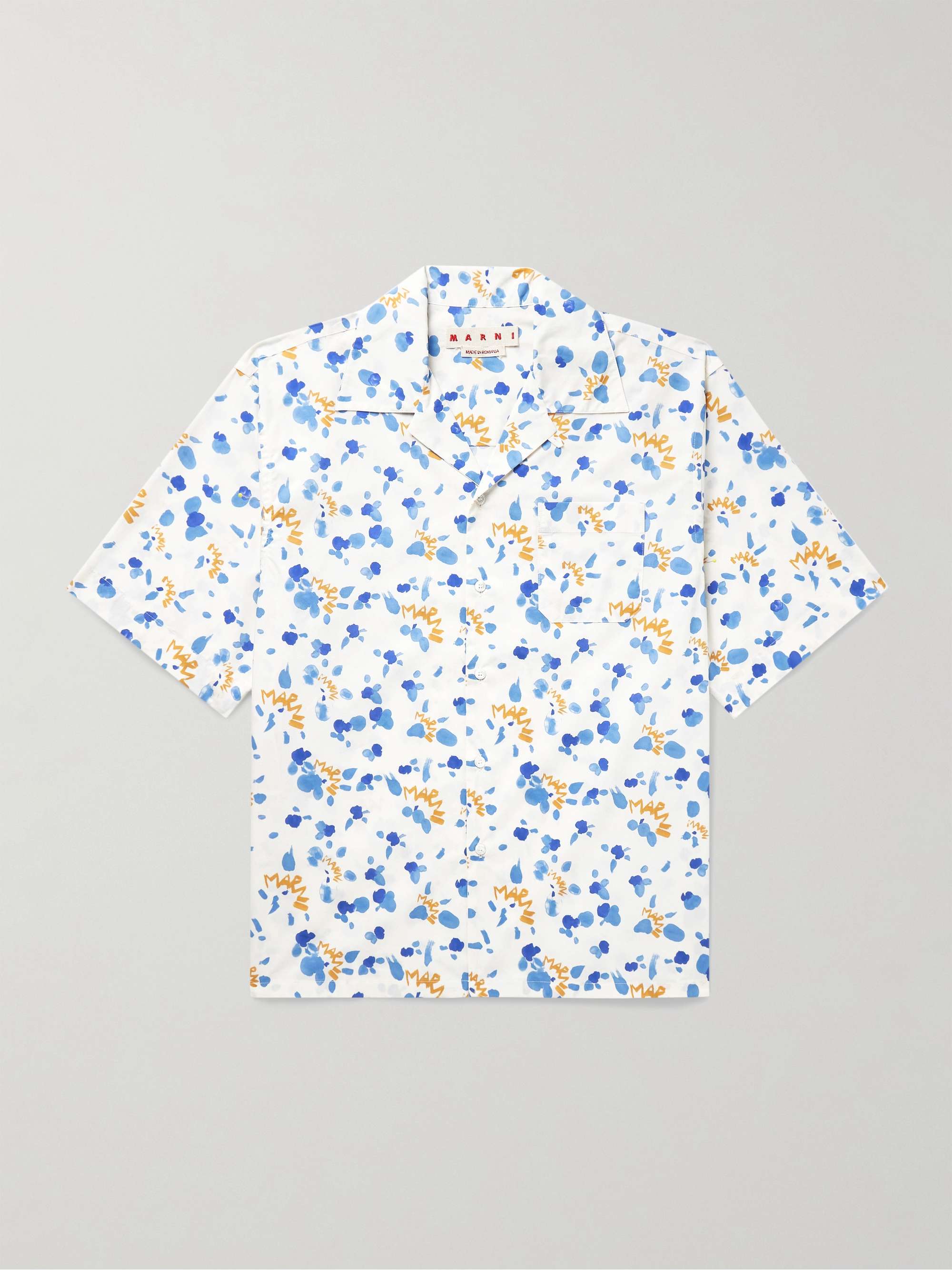 MARNI Convertible-Collar Printed Cotton-Poplin Shirt