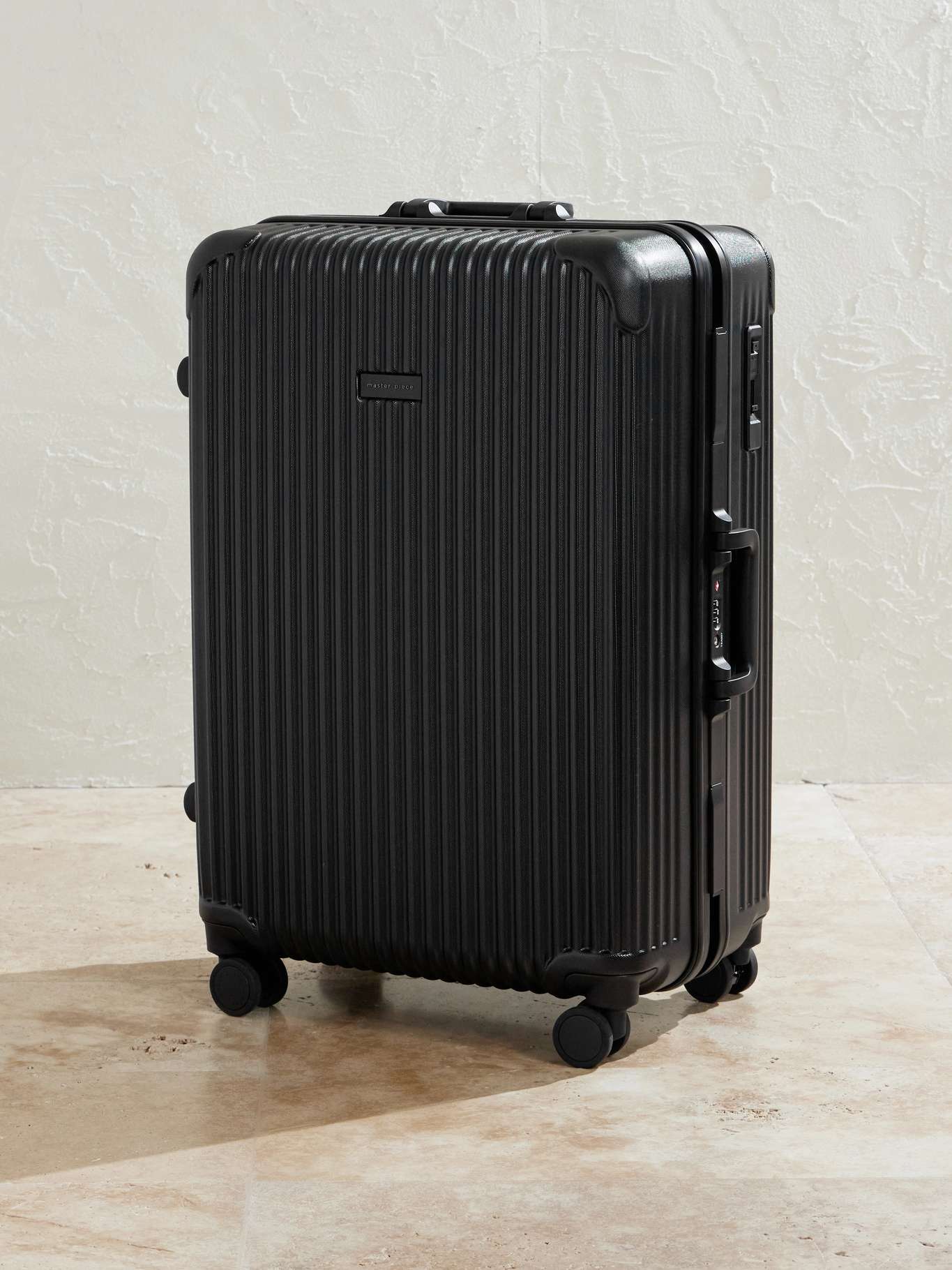 Made in Osaka, Japan, Master-Piece's trolley suitcase has an ultra-durable corrugated polycarbonate shell with impact, heat, and flame resistance so it withstands the inevitable wear and tear of frequent travel. It's equipped with 4 sleek Hinomoto 360-degree wheels, a 3-length carry handle and secures with a TSA-approved lock.