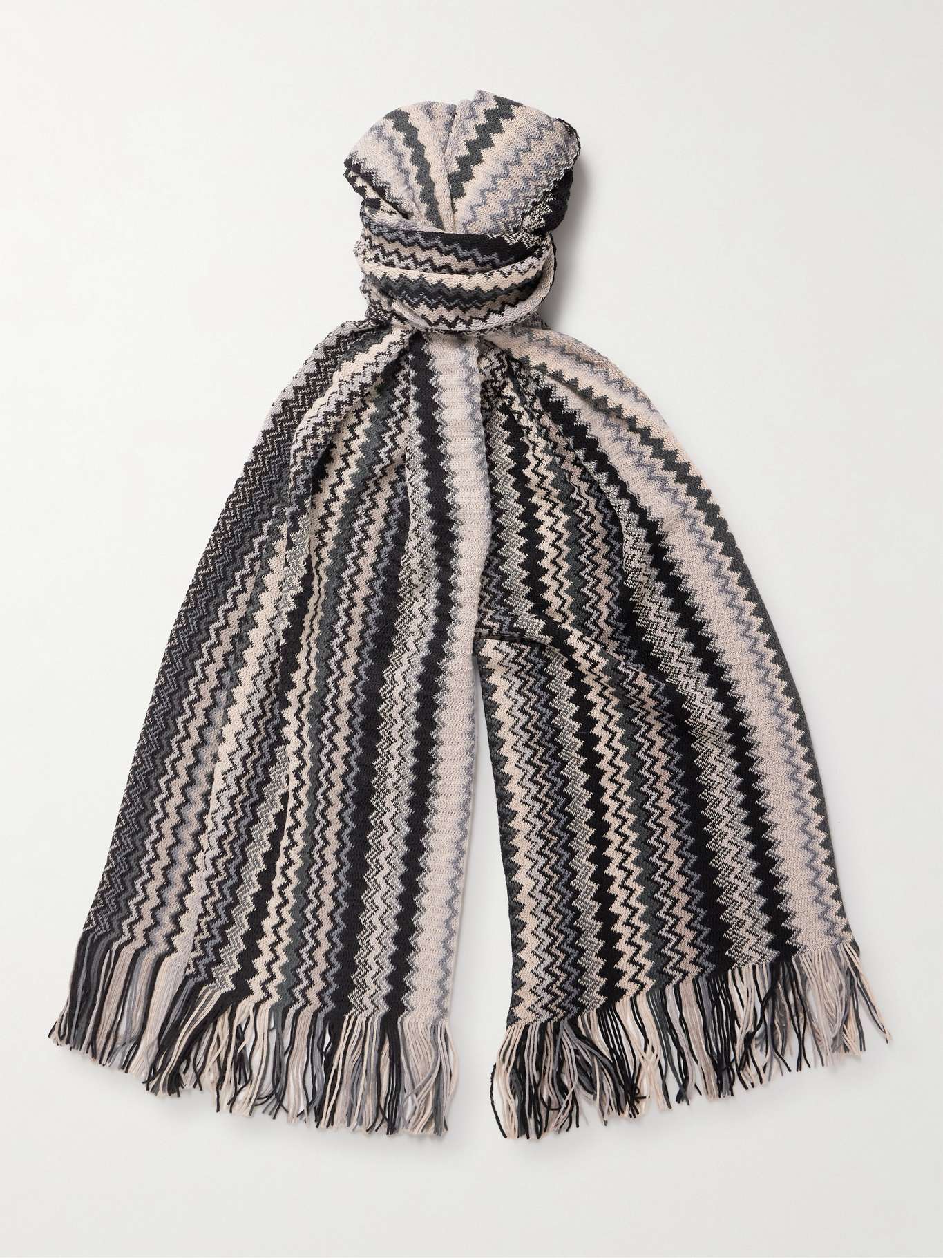 Missoni's scarf is jacquard-woven with the label's iconic zigzags in an earthy, muted palette. It’s been knitted in Italy from an insulating wool-blend and finished with tactile fringed ends.