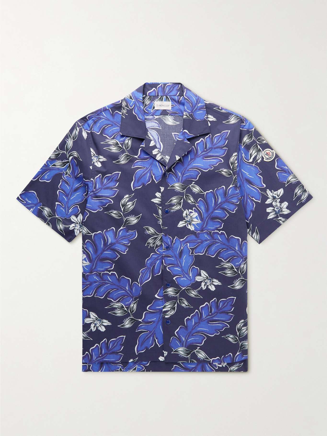 MONCLER Camp-Collar Logo-Appliquéd Printed Cotton-Poplin Shirt