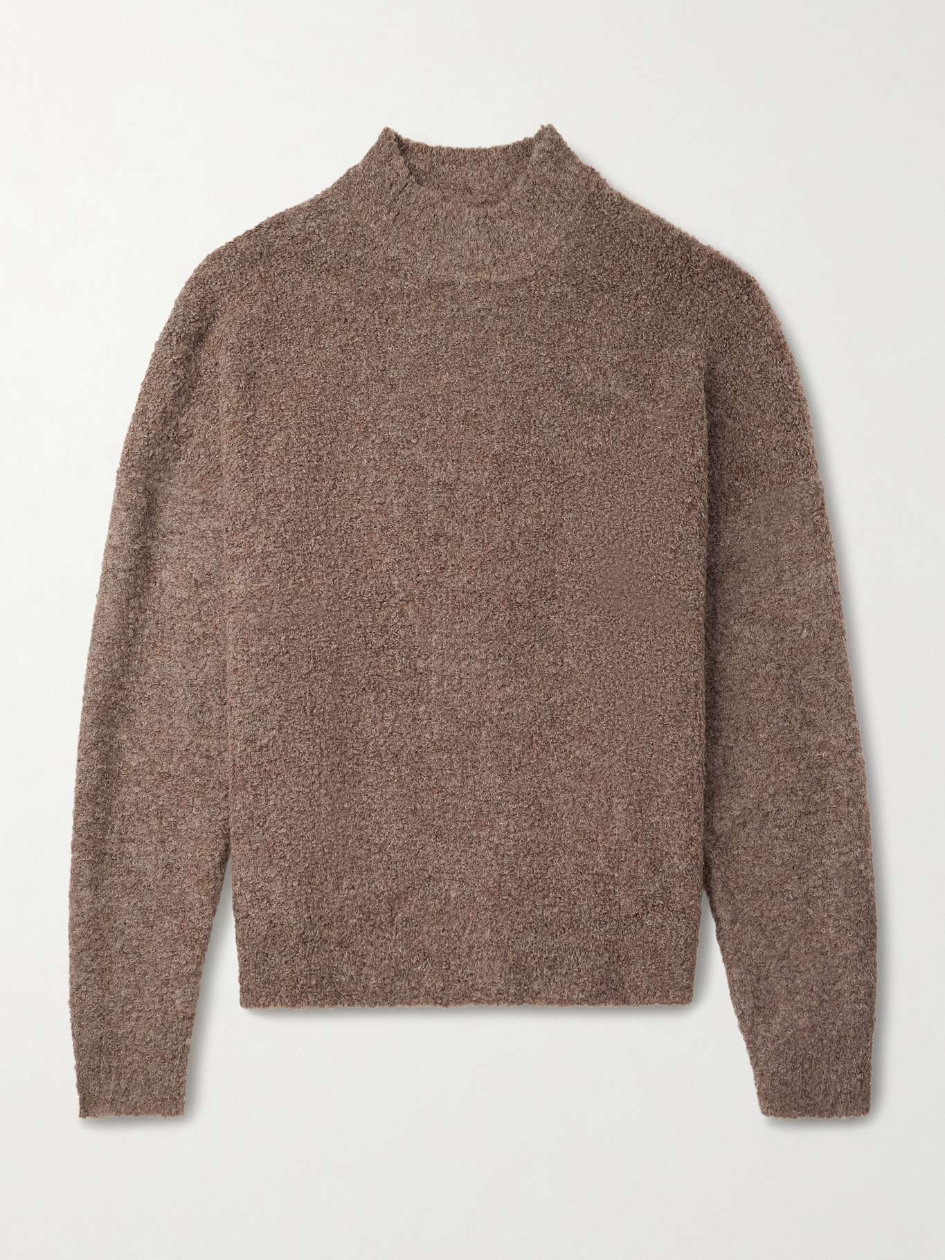 Monitaly's 'Santa Monica' sweater is knitted from alpaca-blend bouclé that's really soft to the touch. It has an oversized fit, with a narrow mock-neck and a loose hem, and is entirely seamless to limit discomfort and irritation.