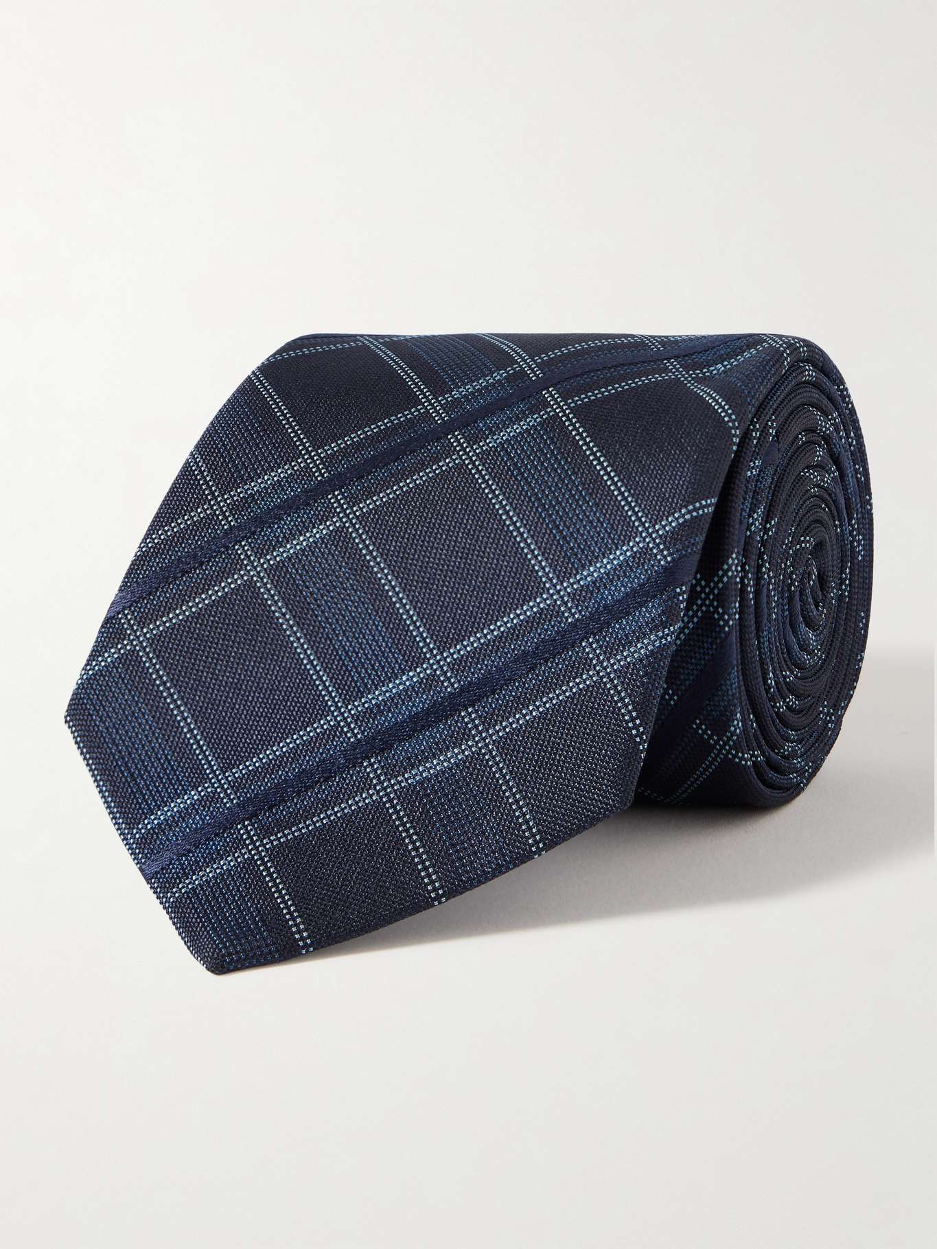 DESIGNED BY MR PORTER. The clean, classic pattern on Mr P.’s tie will add just the right amount of interest to solid suiting. It's been made in the UK from pure silk and is woven in a check motif with a textured overlay.