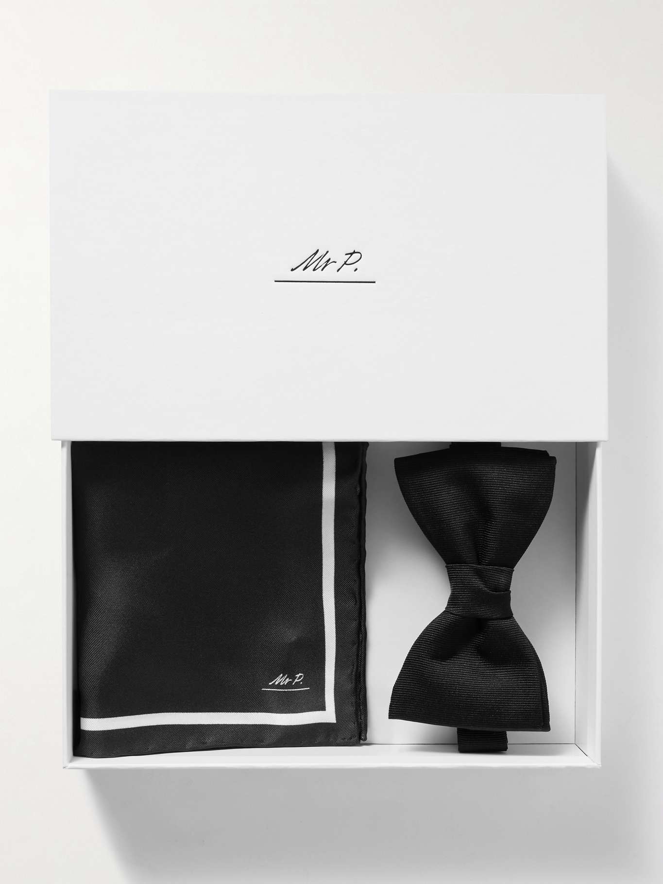 DESIGNED BY MR PORTER.Mr P.'s bow tie and pocket square are designed to complement each other. Both respectively timeless, the former is made from black silk-grosgrain while the silk-twill pocket square is outlined in white to accentuate its peaks when folded.