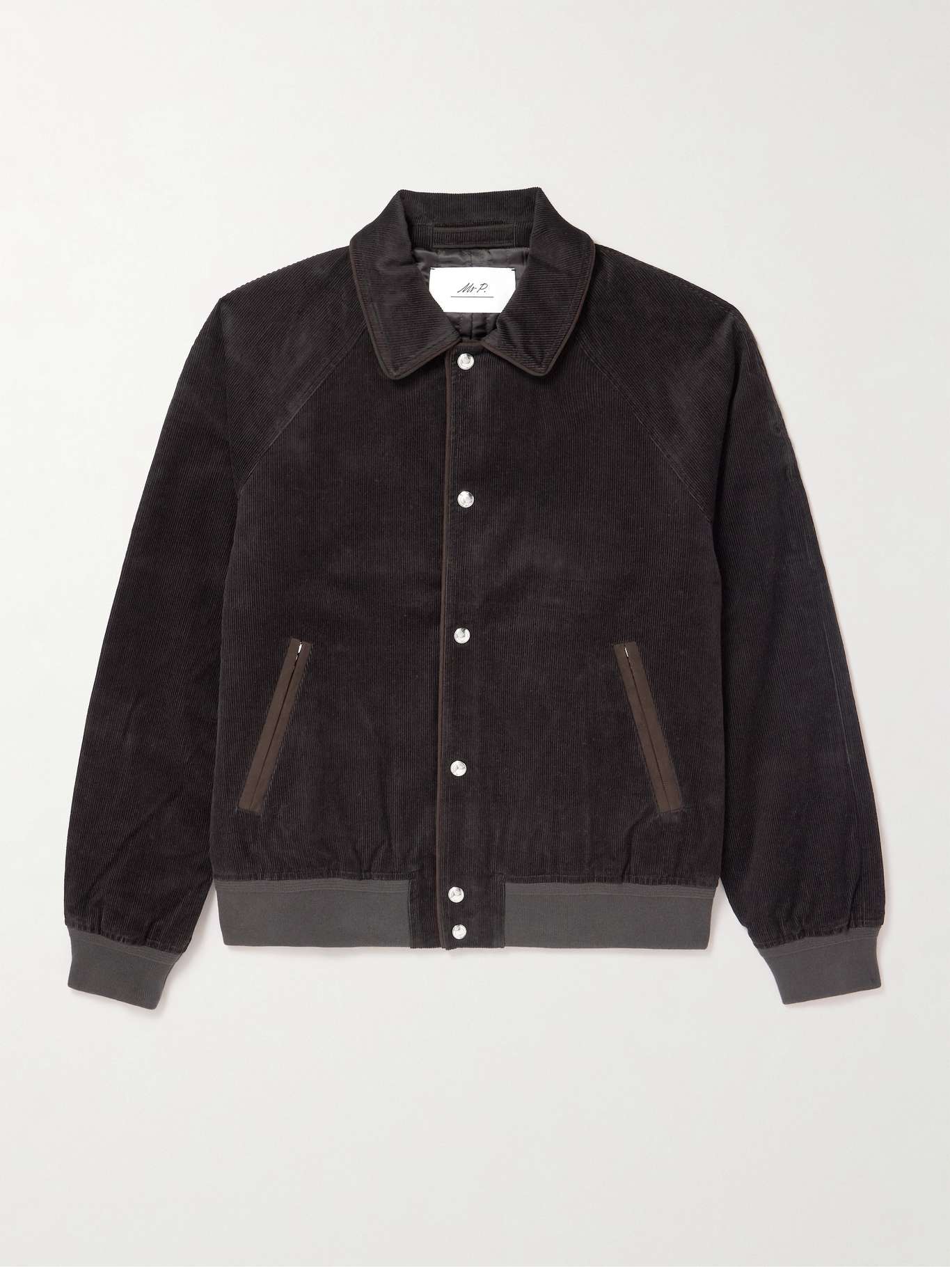 DESIGNED BY MR PORTER. Mr P.'s streamlined varsity jacket is a refined interpretation of the sportswear classic. Trimmed with soft suede, it's made from fine-wale cotton-corduroy and fully lined for easy layering.